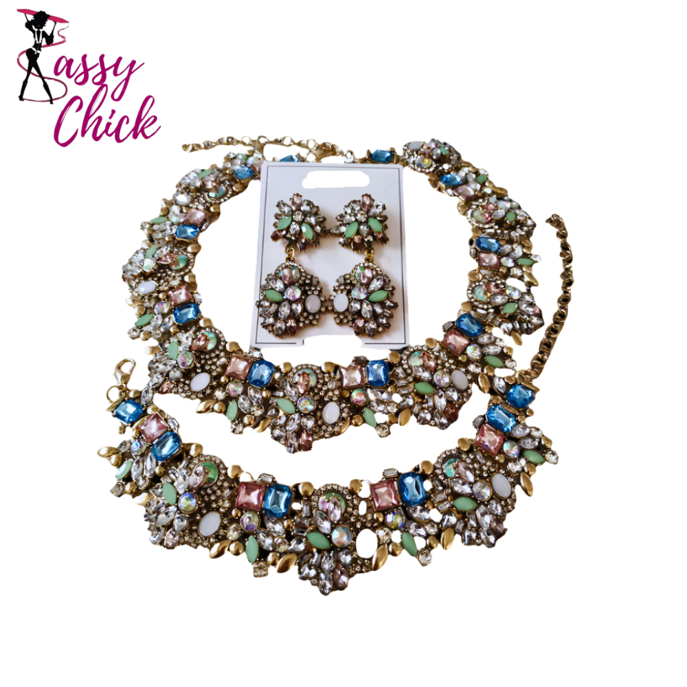 This New Crystal Rhinestone Bridal Statement Jewelry Set is designed to make any bride shine. Featuring sparkling crystals and rhinestones, the set includes a matching necklace, earrings, and bracelet, perfect for adding glamour to the wedding day. With its bold and elegant design, it beautifully complements bridal gowns, creating a stunning and unforgettable look.