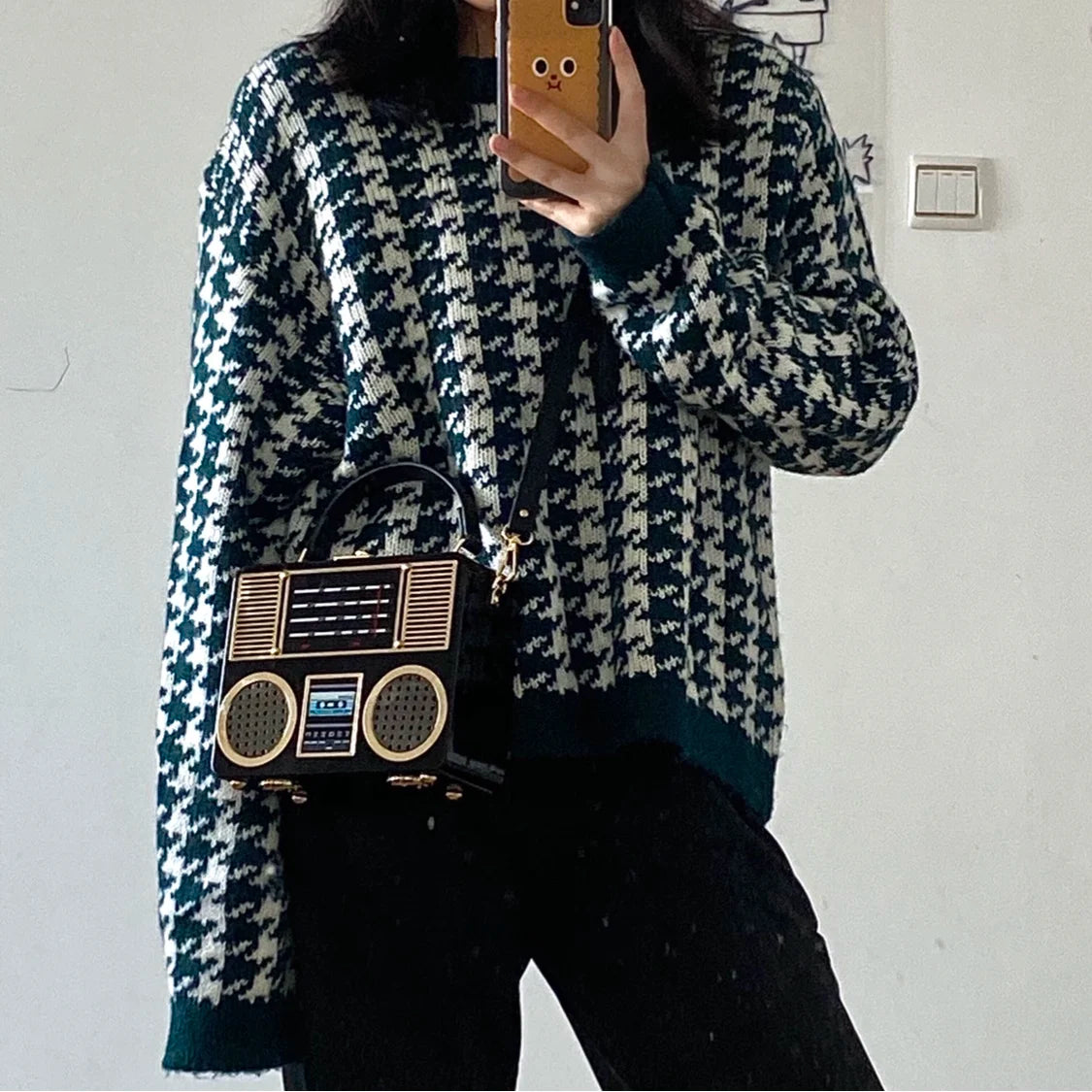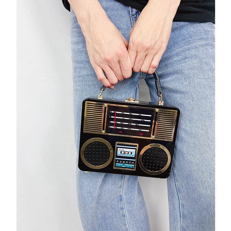 Make a bold statement with the Acrylic Radio Bag Box Shaped Purse, a fun and trendy accessory designed to turn heads. Featuring a glossy acrylic finish in a unique retro radio silhouette, this purse blends fashion with playful charm. Its sturdy structure keeps essentials safe, while the compact size makes it perfect for parties, events, or casual outings.