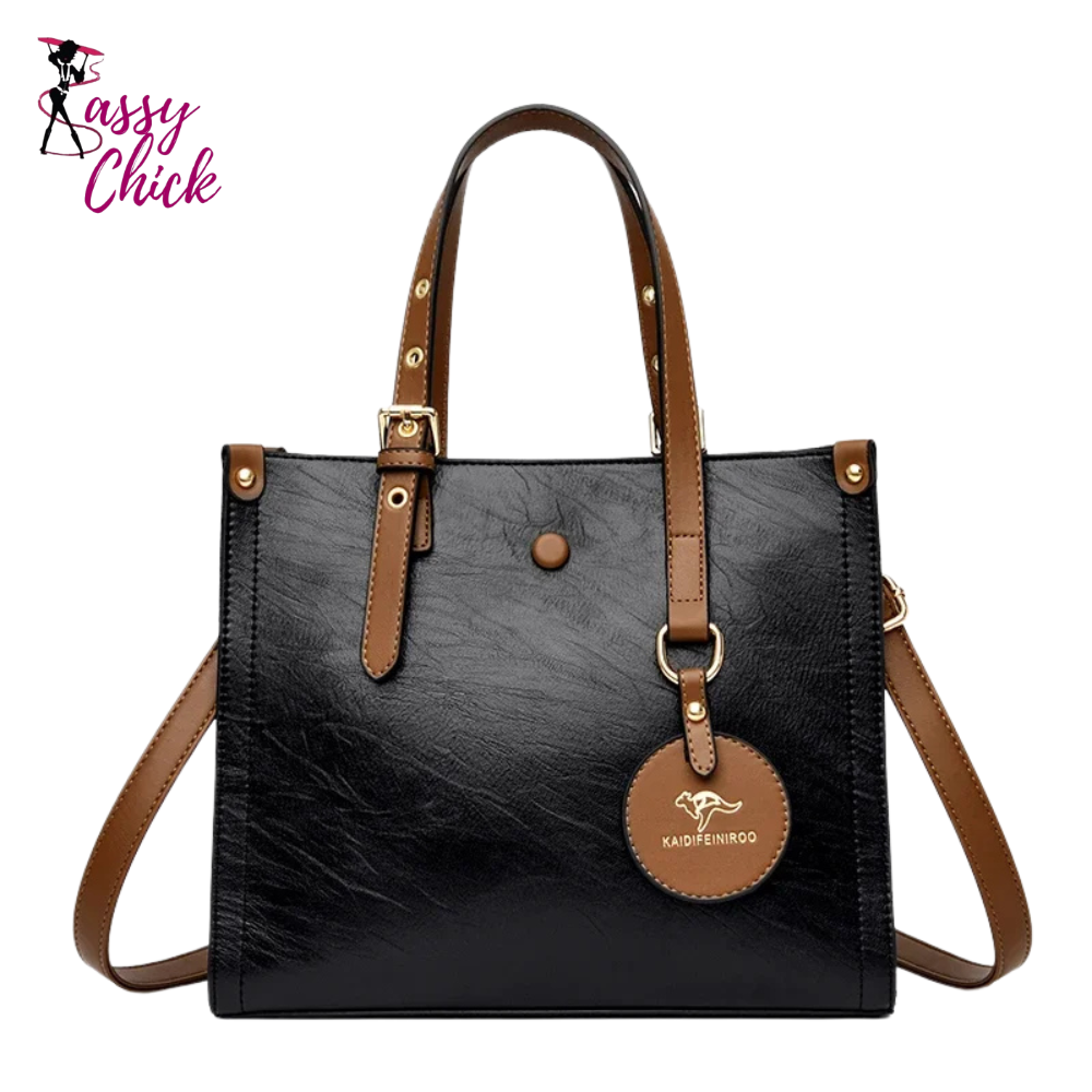 Casual Vintage Tote Hand Bag Leather Sassy Chick Logo