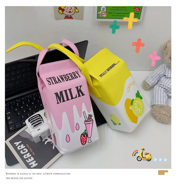 Quirky and stylish, the Milk Box Shape Shoulder Bag is a fun accessory for fashion-forward individuals. Its unique carton-inspired design, durable build, and roomy interior make it perfect for carrying essentials with a playful twist, while the adjustable strap adds comfort and versatility for daily use.