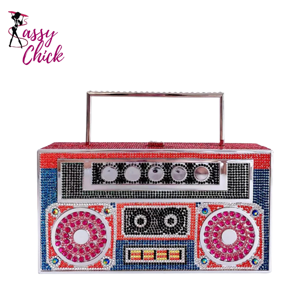 Turn up the style with the Radio Shape Metal Handle Evening Clutch Bag. This retro-inspired accessory features a chic radio design with a sleek metallic handle, combining vintage vibes with modern glamour. Perfect for parties, weddings, or nights out, it adds a fun yet classy twist to your evening look.