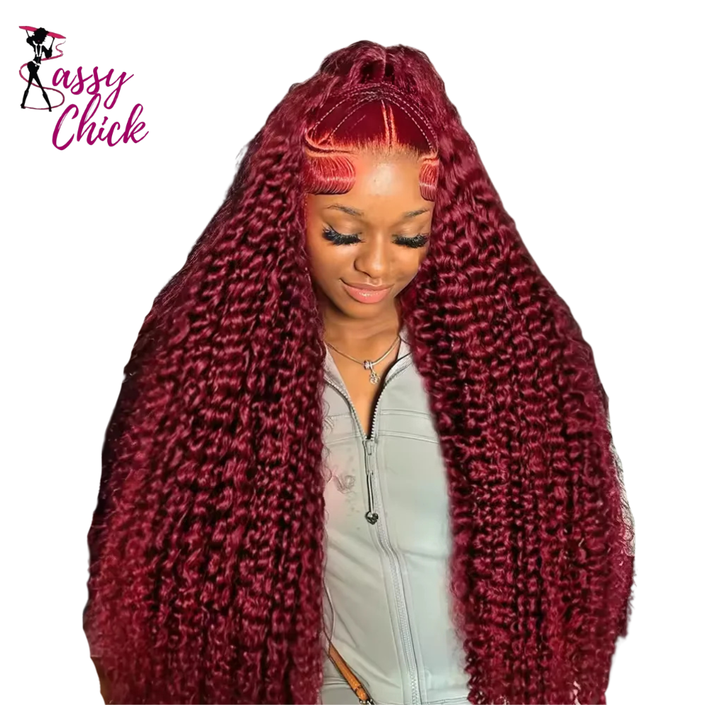 Turn heads with the Burgundy Deep Wave Lace Curly Human Hair Wig! Crafted from 100% human hair, this bold wig features rich burgundy tones and defined deep waves. The lace front ensures a seamless, natural hairline, while the curls add bounce and volume for a glamorous, confident look.