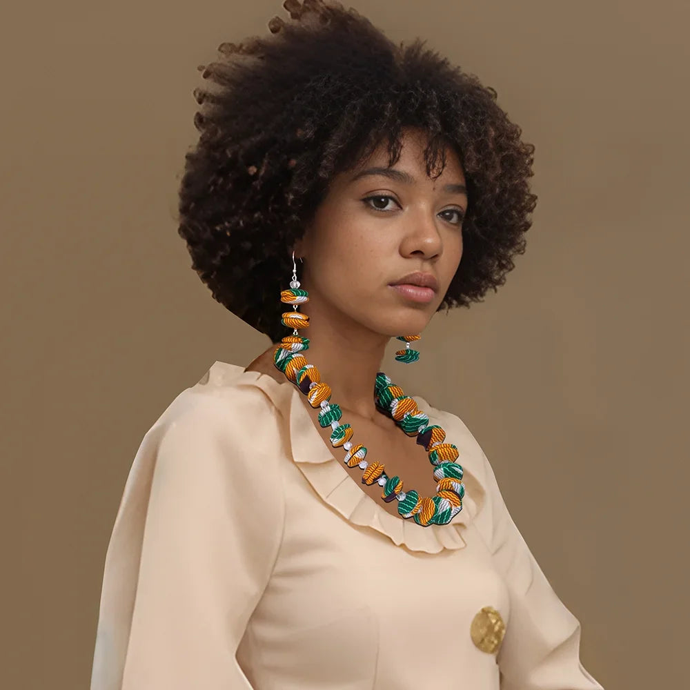 Celebrate culture and creativity with this African Buttons Necklace and Earrings set. Handmade with vibrant buttons and bold colors, each piece reflects authentic African artistry. Lightweight, eye-catching, and full of personality perfect for adding a unique, handmade touch to any outfit.