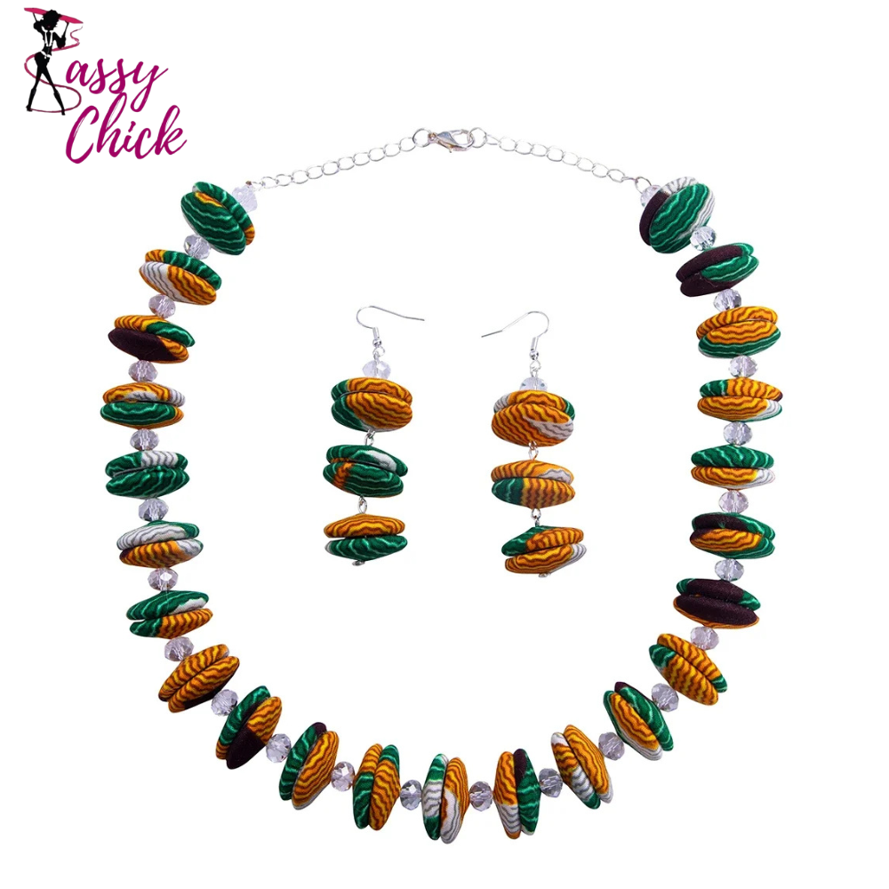 African Buttons Necklaces and Earrings Handmade Jewelry