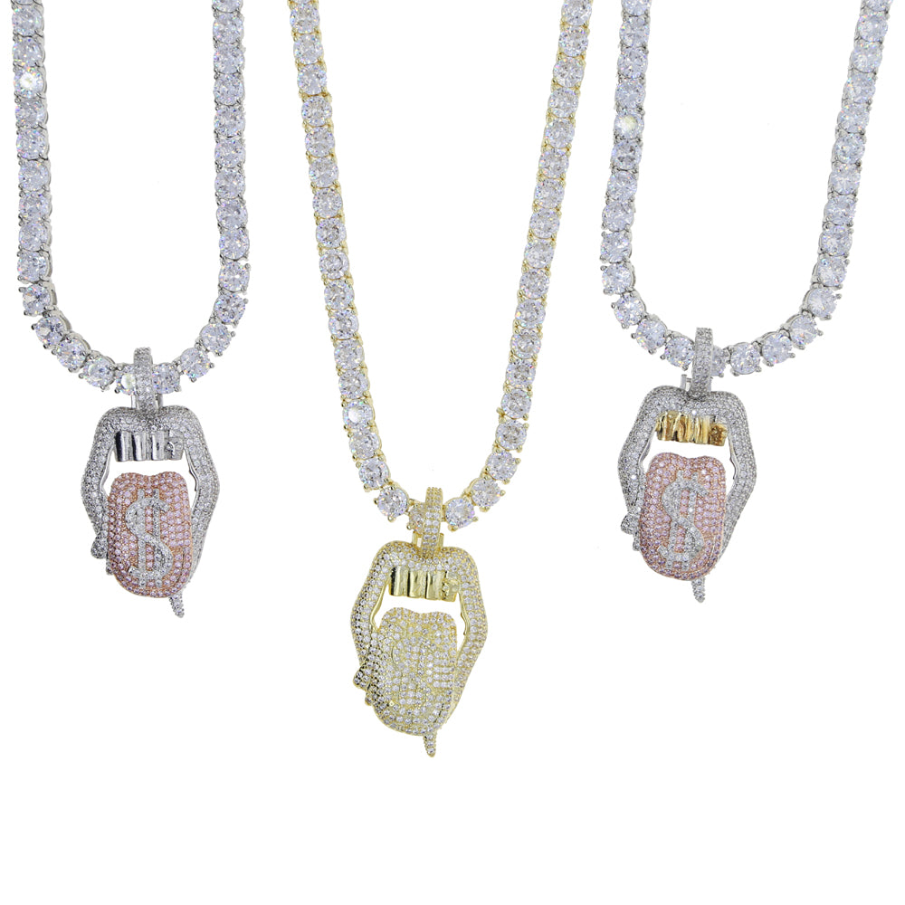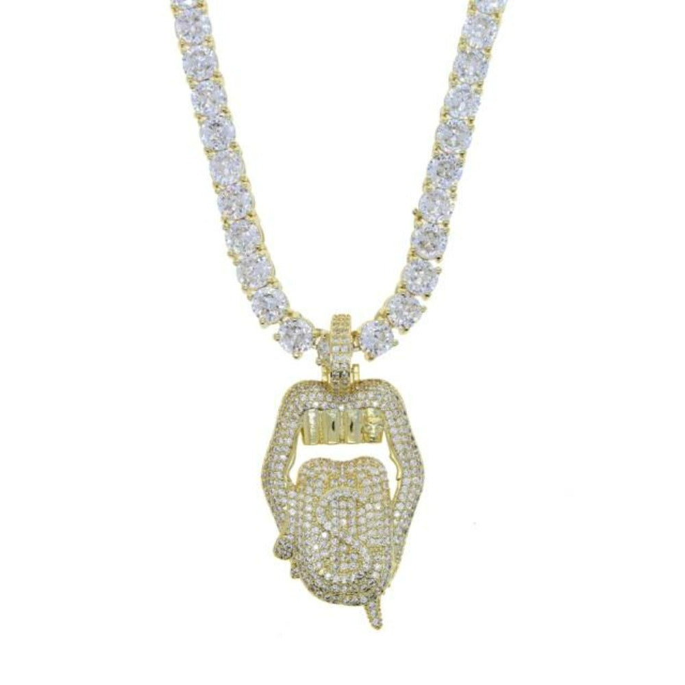 Make a bold statement with this Drip Lip Dollar Sign Necklace, blending urban street style with eye-catching bling. Featuring a shimmering dollar sign and edgy drip lip design, it’s perfect for parties, hip-hop fashion, or standout everyday wear. A must-have accessory for trendsetters.