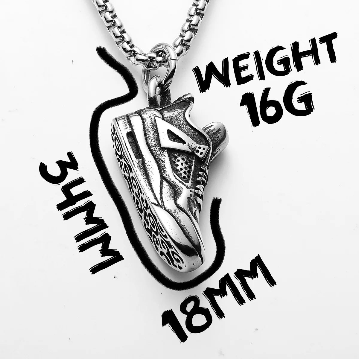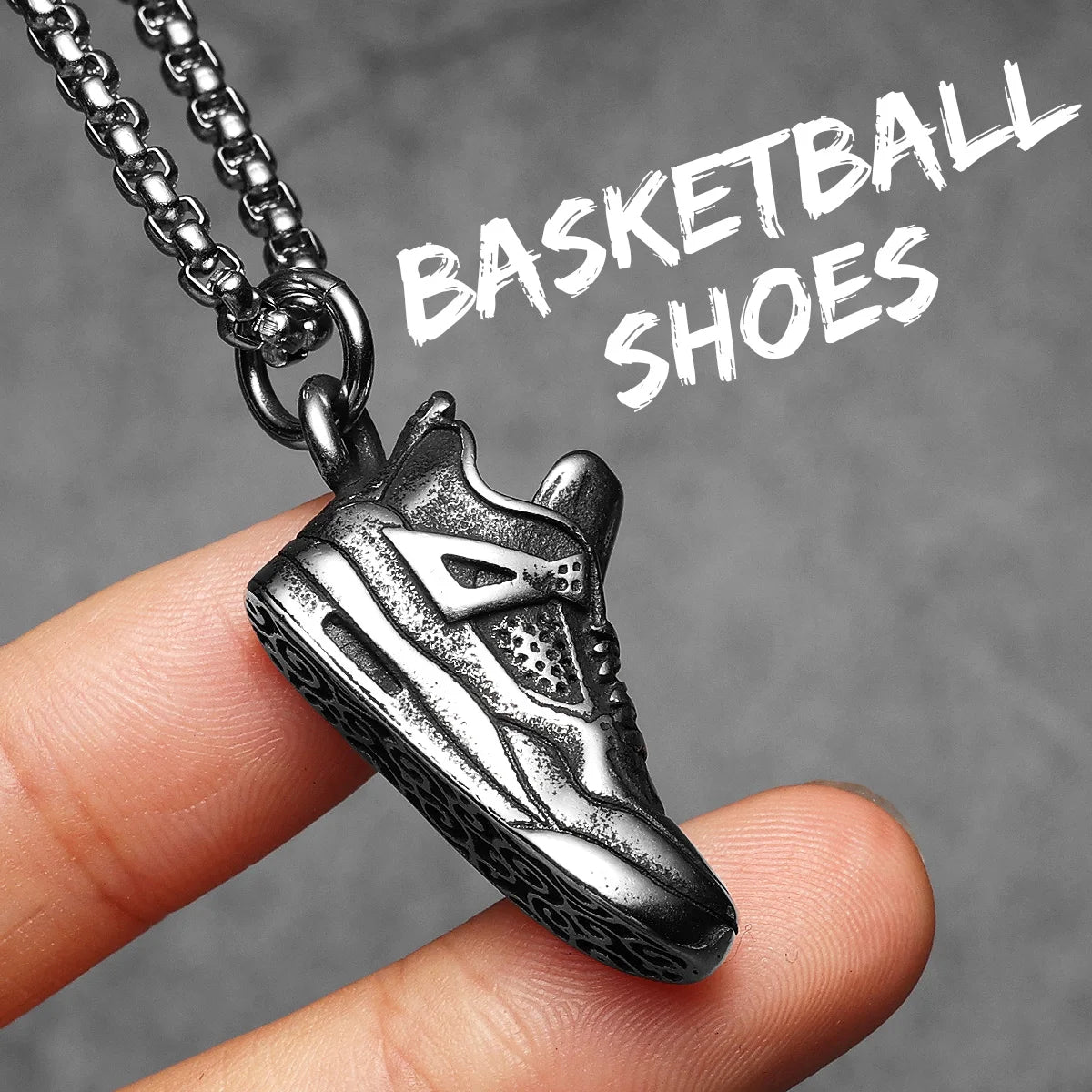 Step up your street style with this Retro Basketball Shoes Pendant made of durable stainless steel. Designed for sneakerheads and basketball lovers alike, this standout piece adds a sporty edge to your jewelry game. Perfect for casual wear or gifting with hip hop flair.
