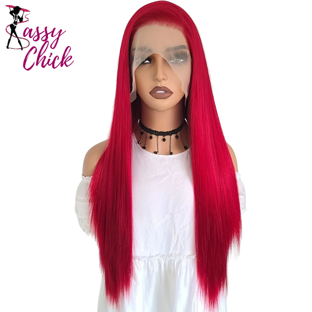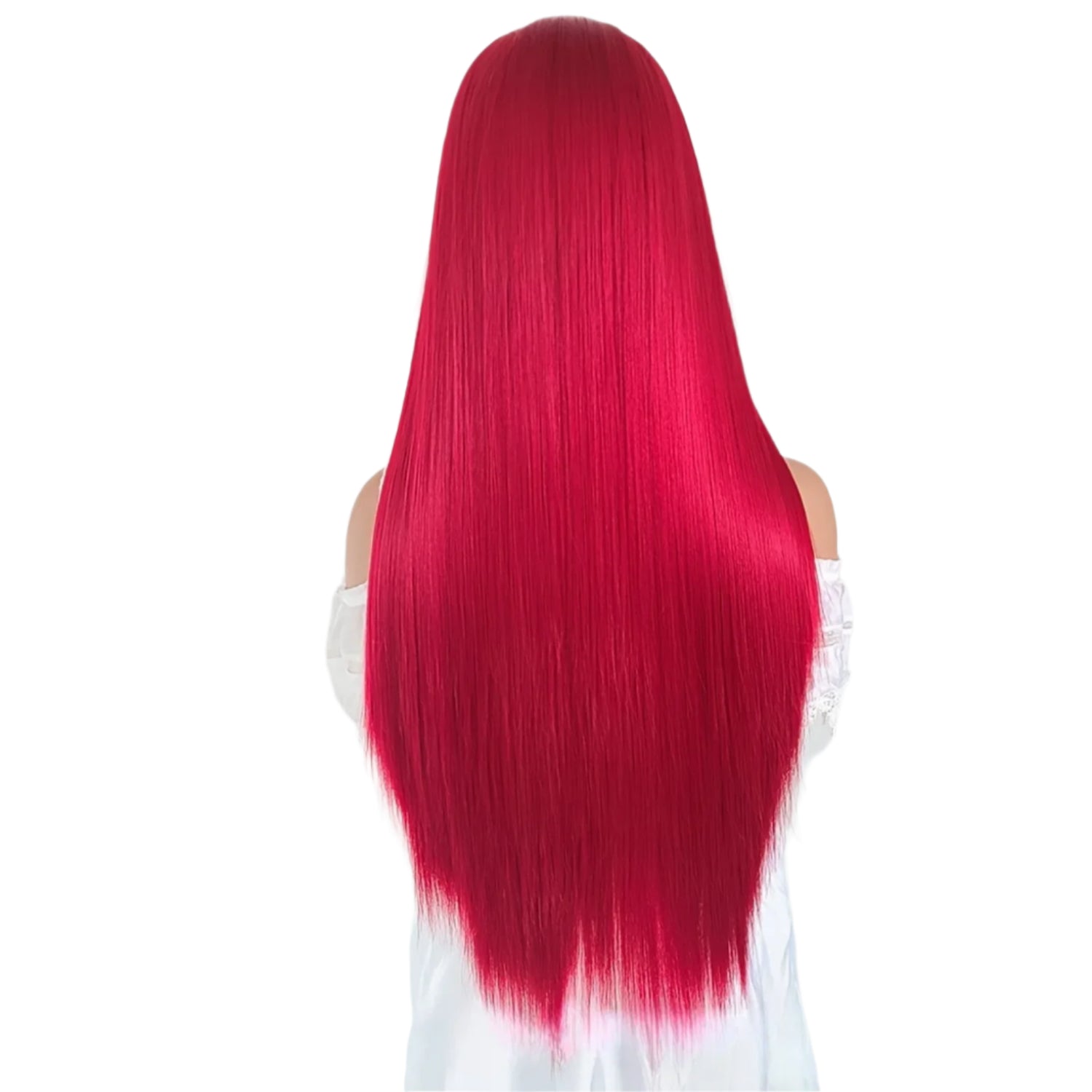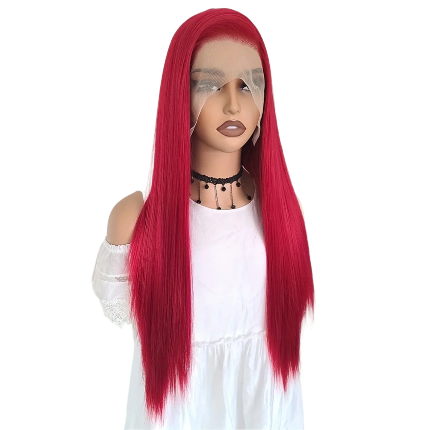 The 13x4 Burgundy Red Long Straight Synthetic Wig exudes bold elegance with its vibrant red hue and sleek, straight design. Crafted from high-quality synthetic fibers, this wig offers a natural look with a soft, silky texture. The 13x4 lace front ensures a seamless hairline for a flawless finish. Perfect for making a statement!