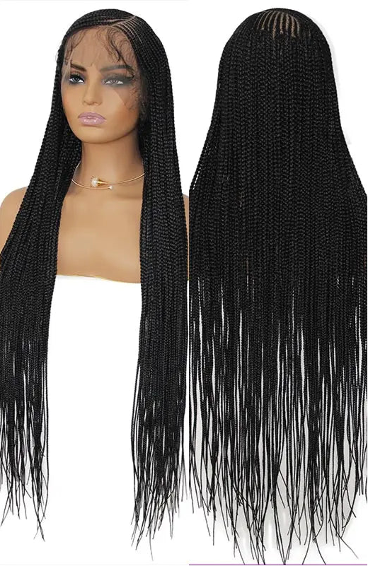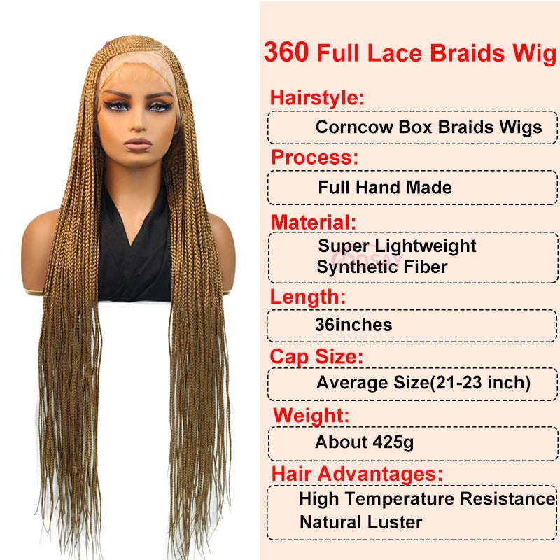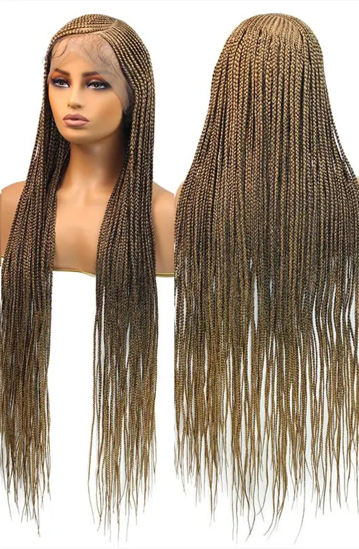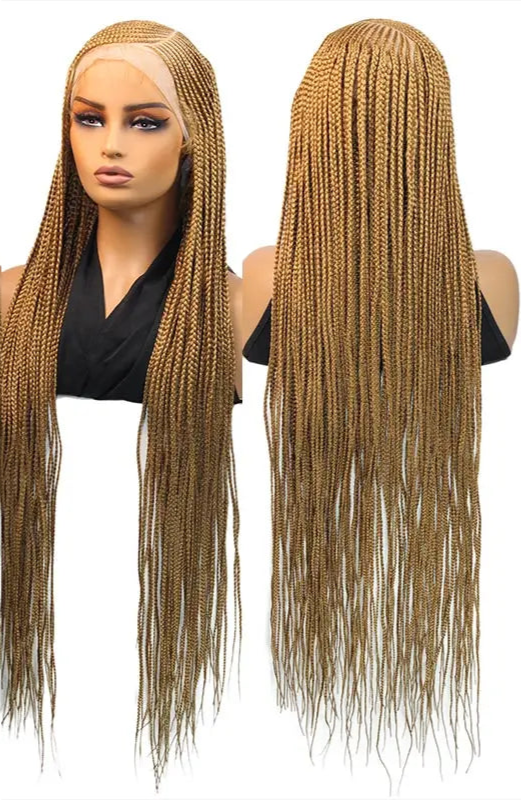 The 613 Blonde 36" Cornrow Box Braided Wig is a show-stopping, pre-styled braided wig designed for effortless elegance. Featuring long, sleek box braids in a striking platinum blonde shade, this wig offers a natural lace front for a seamless hairline. Perfect for protective styling, it provides a lightweight, comfortable fit with zero tension on your natural hair. Elevate your look with this bold and glamorous braided beauty!