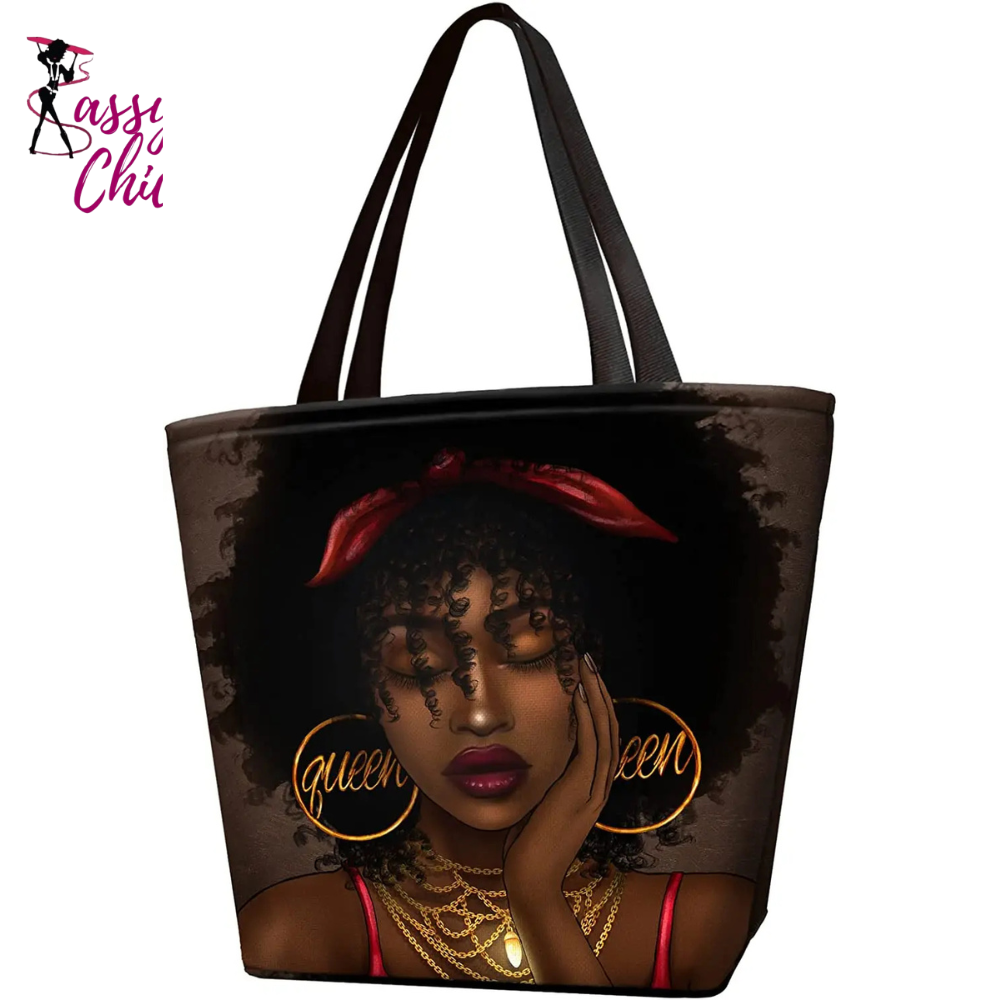 African Queens Face Printed Tote Bags Sassy Chick Logo