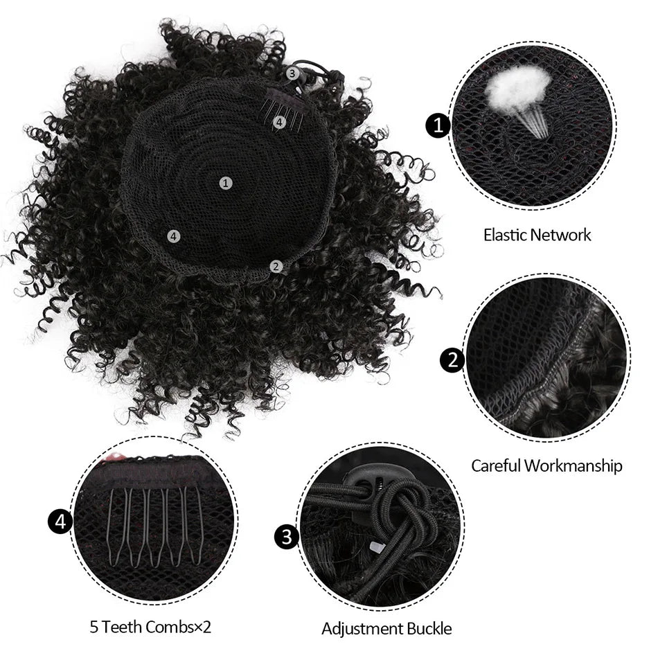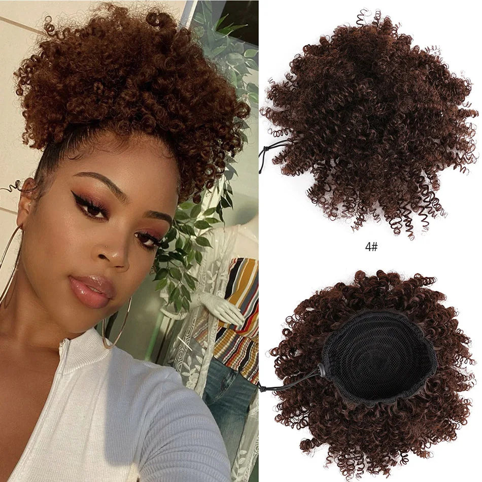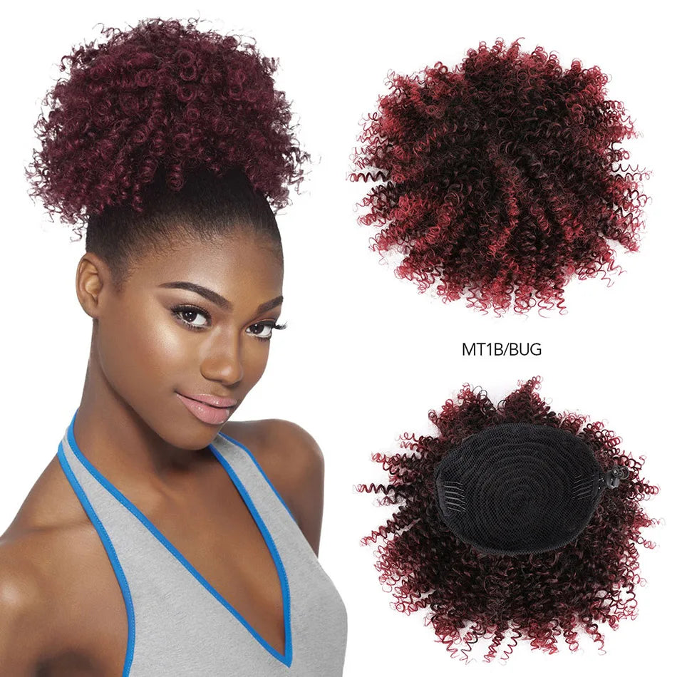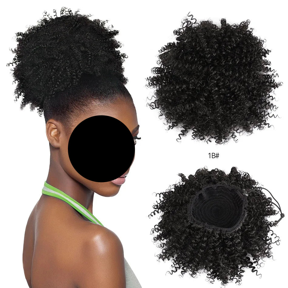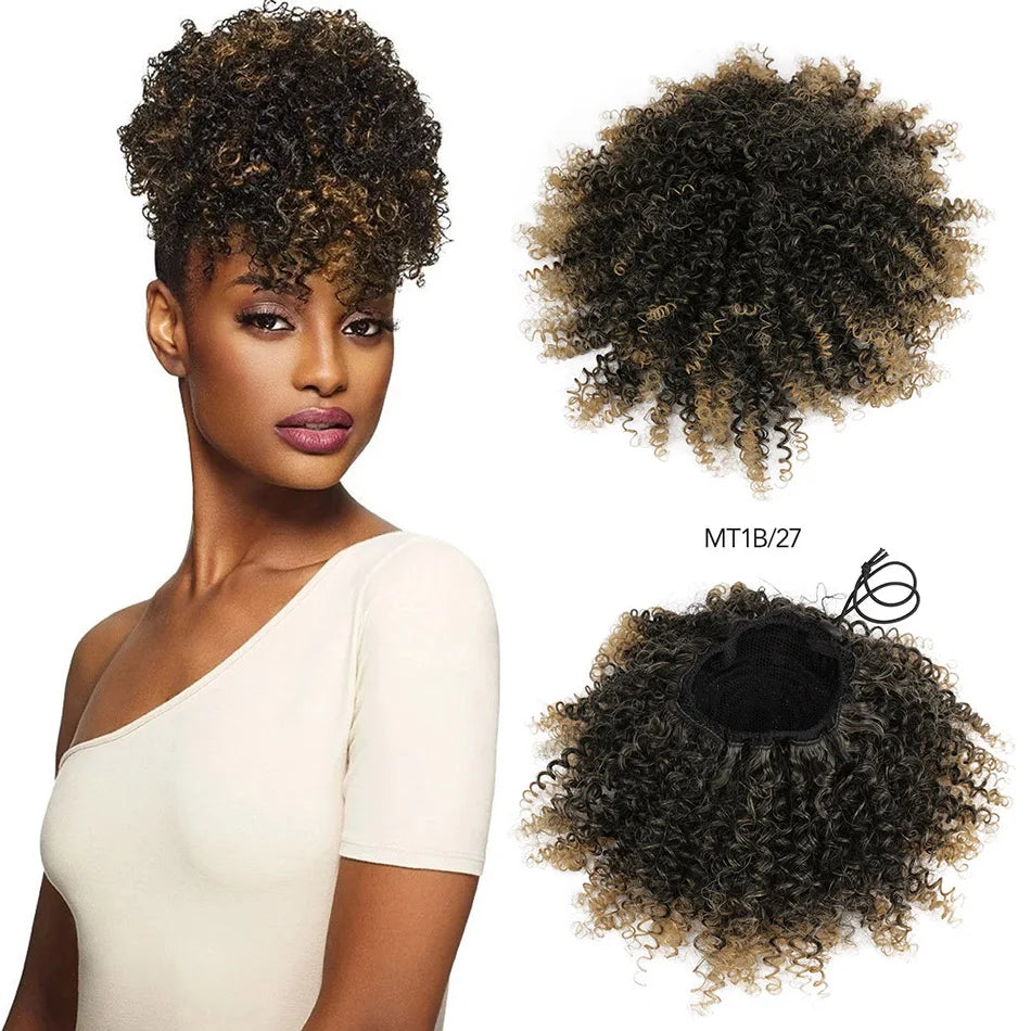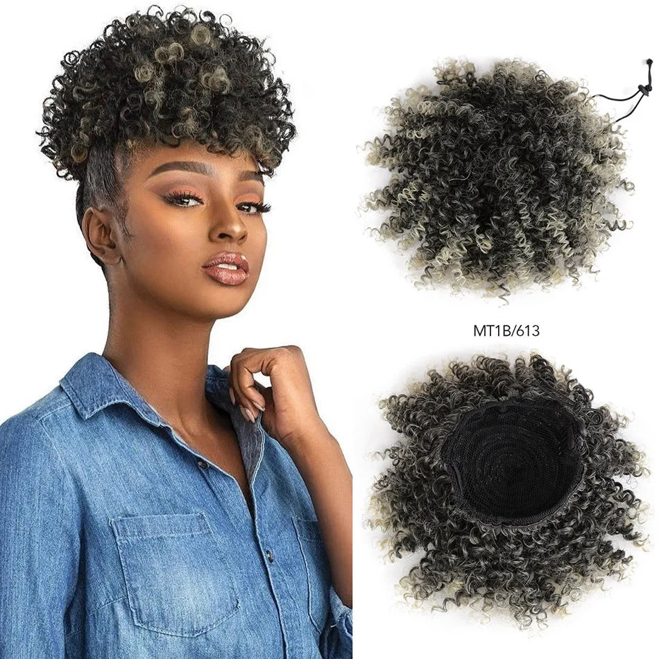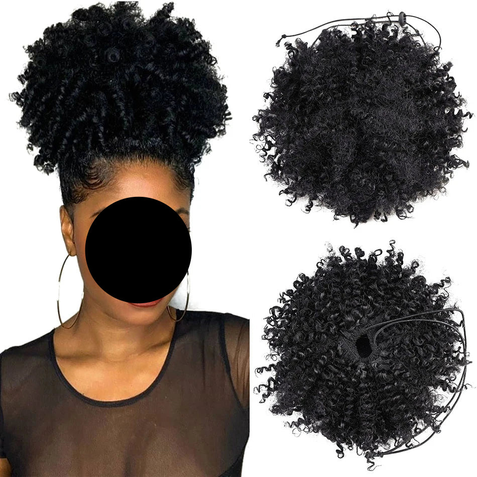 Afro Puff Curly Hair Buns Ponytail Synthetic Wig