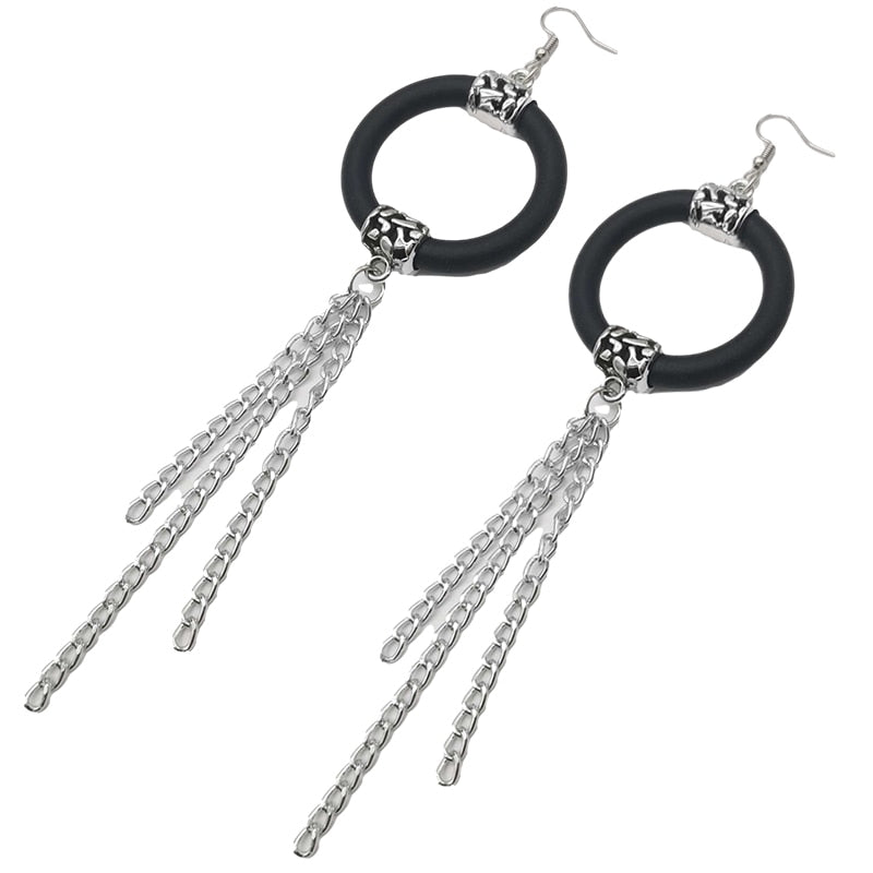 Beautiful round black and silver long drop earrings. Elegant and sophisticated the perfect earrings to make a statement! Share with the world your exquisite taste! Lightweight earrings.