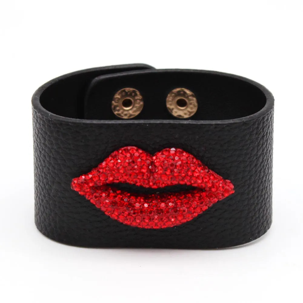 Crystal Red Lip Leather Bracelet. This captivating accessory is a fusion of elegance and boldness, designed to make a statement and leave a lasting impression.