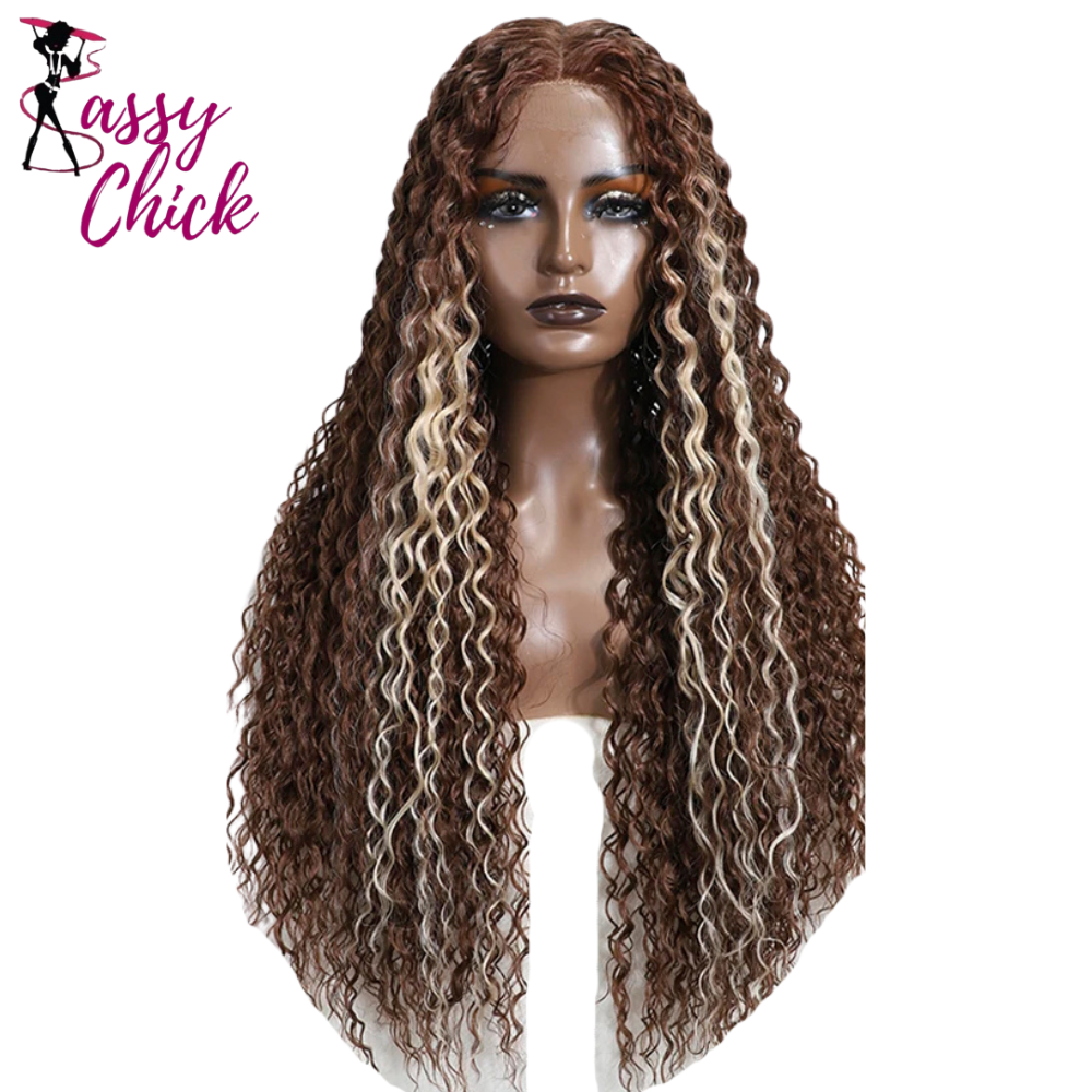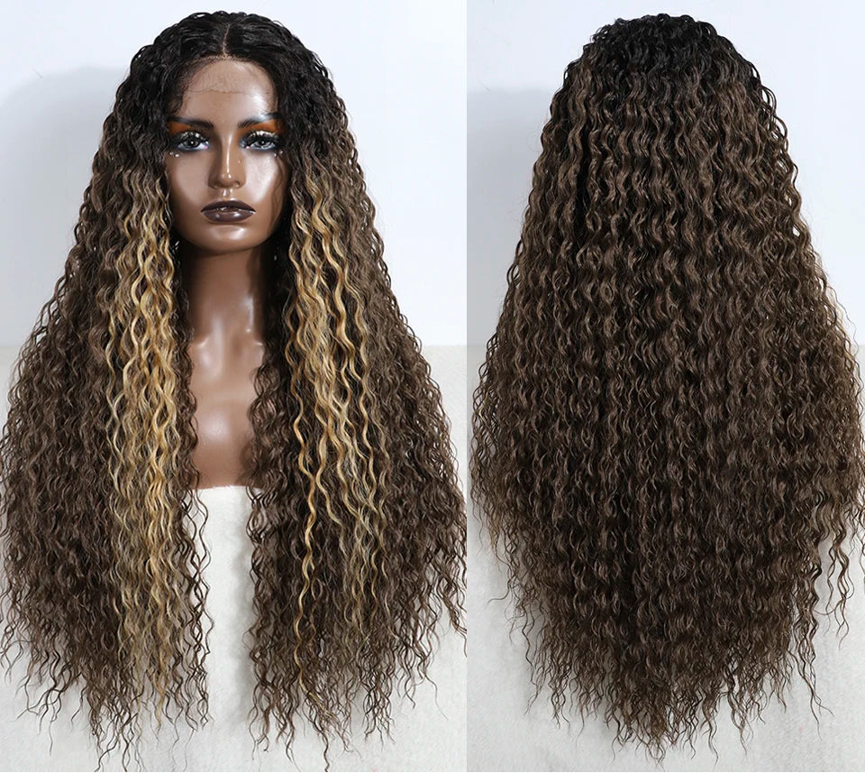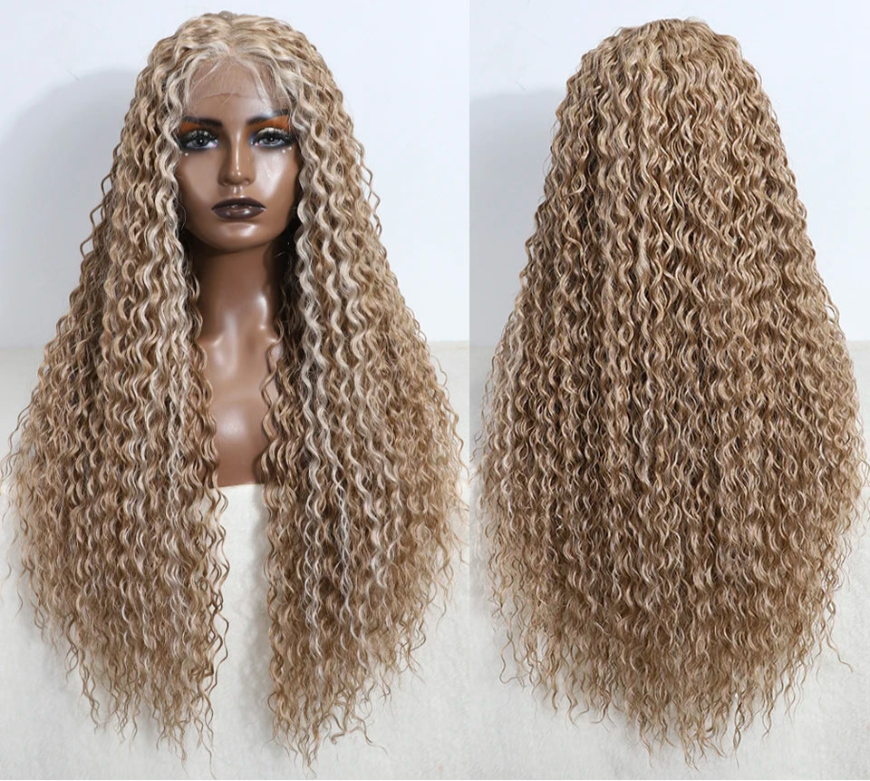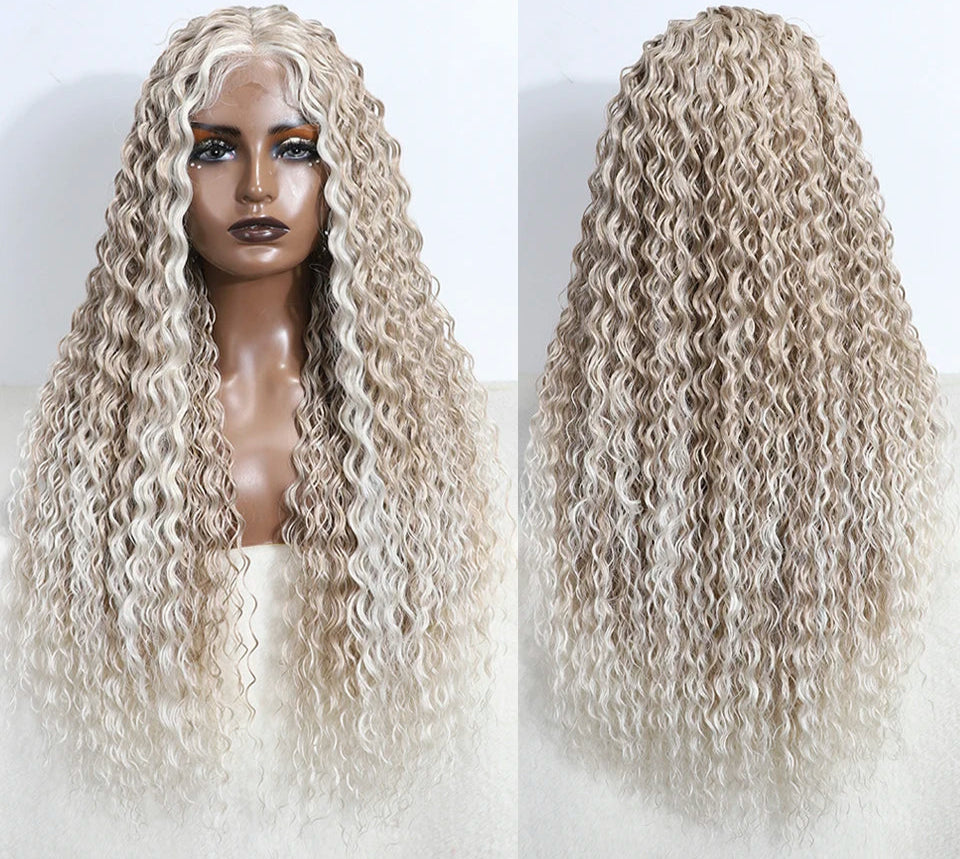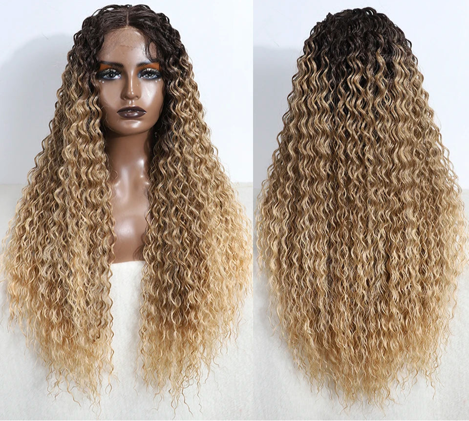 The Curly 31 Inch Ombre Blonde Lace Front Wig features stunning voluminous curls with a seamless ombre transition for a bold and elegant look. Designed with a lace front for a natural hairline, this wig offers a comfortable fit and effortless styling. Perfect for adding length, volume, and a touch of glamour to any occasion.
