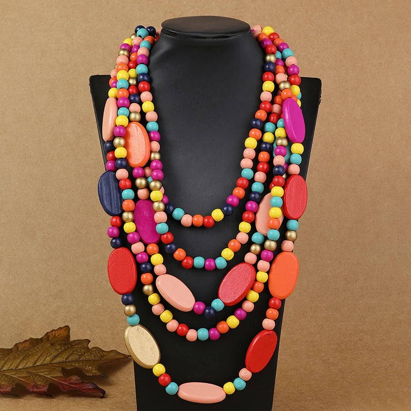 Ethnic Multi-Layer Beaded Wood Necklace – a stunning blend of cultural charm and artisanal craftsmanship. Handcrafted with vibrant wooden beads, this statement piece adds a boho-chic touch to any outfit. Perfect for festivals, casual wear, or bold fashion lovers looking to stand out effortlessly!