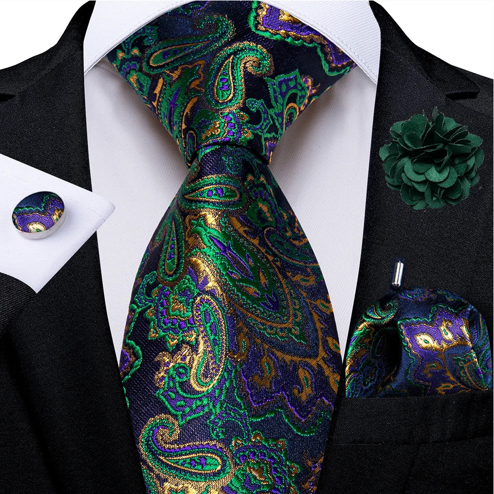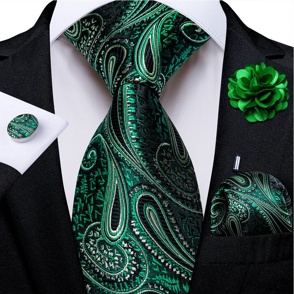 Elevate your formal wardrobe with our Green and Golden Paisley Silk Tie Set. Crafted from luxurious silk, this set blends elegance and charm effortlessly. Ideal for weddings, business events, or any occasion where you want to stand out. Includes a matching pocket square for a polished finish.