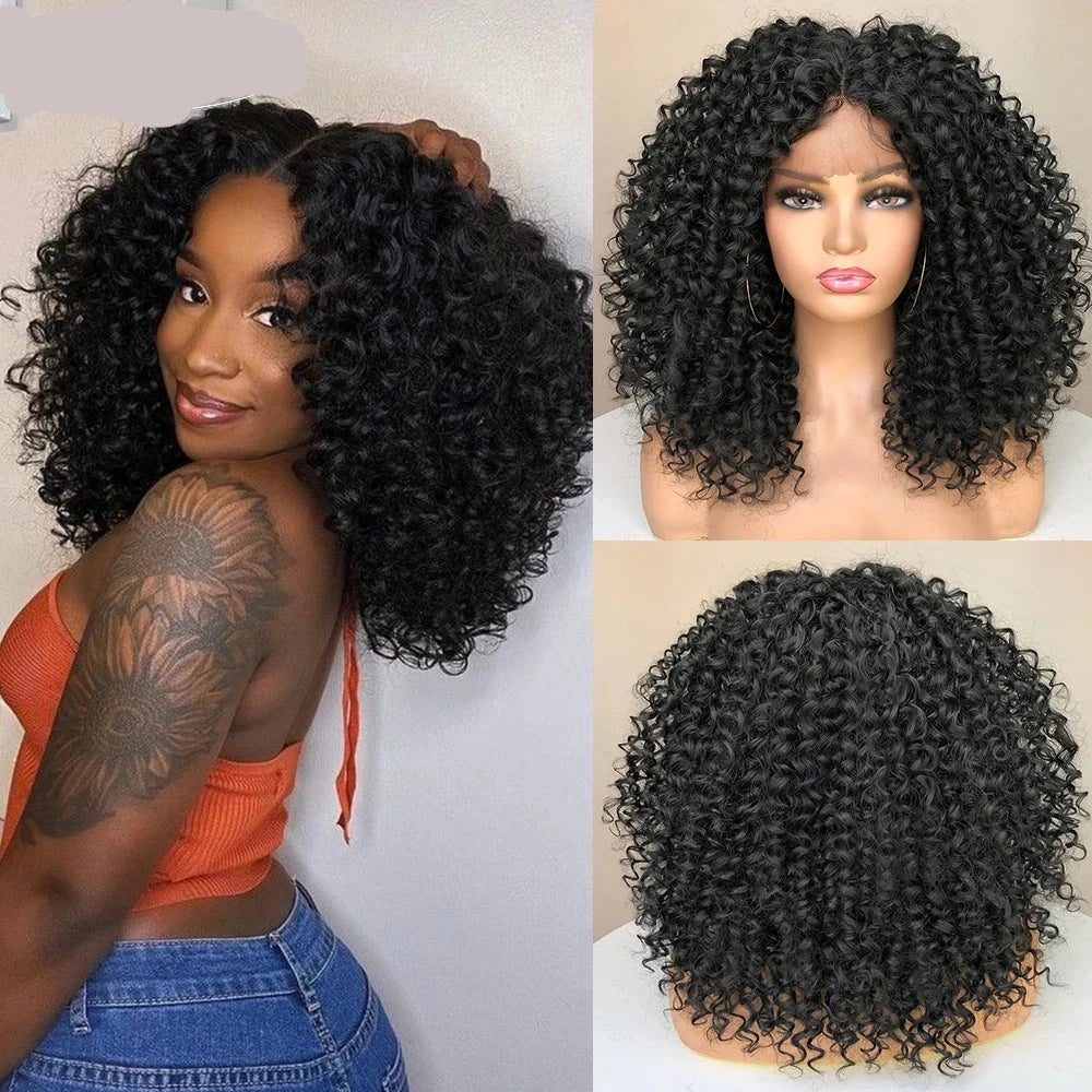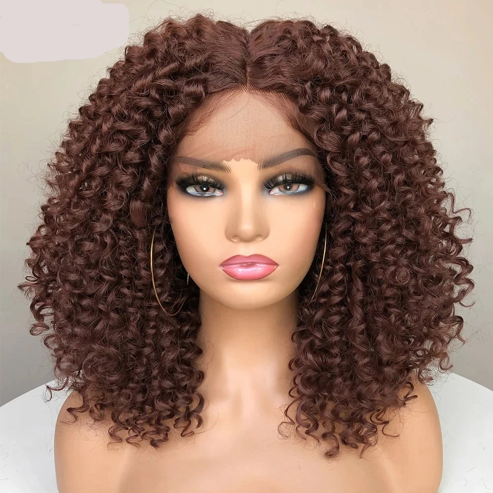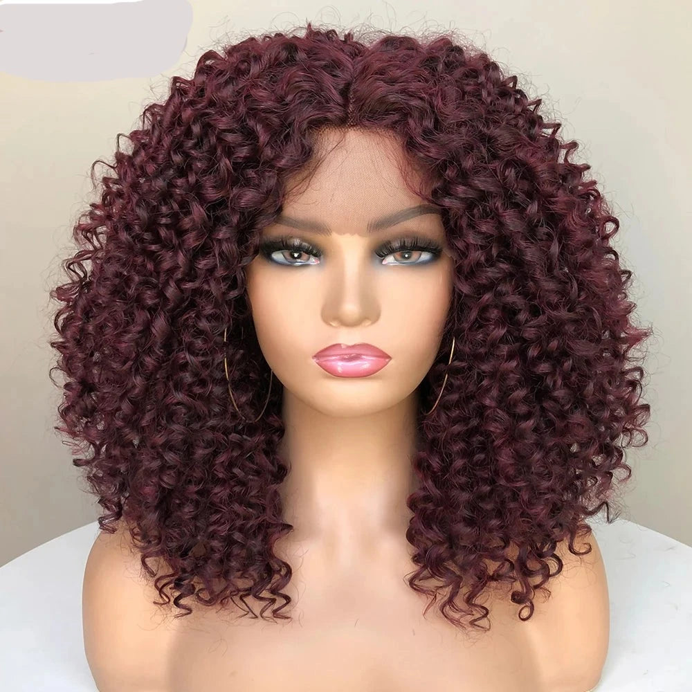 Kinky Curly Bob Synthetic Wig: Embrace a bold look with this kinky curly bob synthetic wig. Featuring tight, voluminous curls and a chic bob cut, it offers a stylish and playful hairstyle with a natural feel.