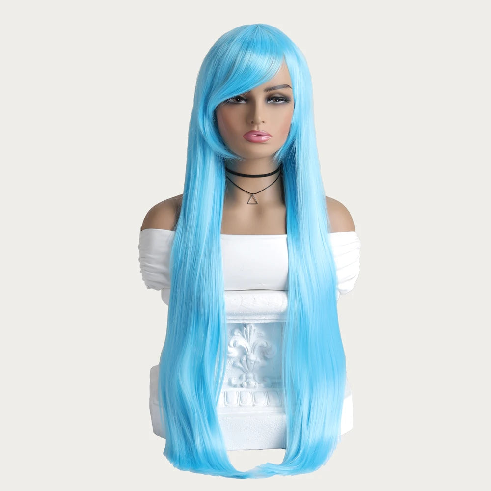 Stand out with this long straight mid bangs women purple ombre heat-resistant wig. Featuring a sleek finish and trendy gradient color, it adds a bold and modern touch to your style. Perfect for daily wear, cosplay, parties, and photoshoots, giving you a confident and eye-catching look.