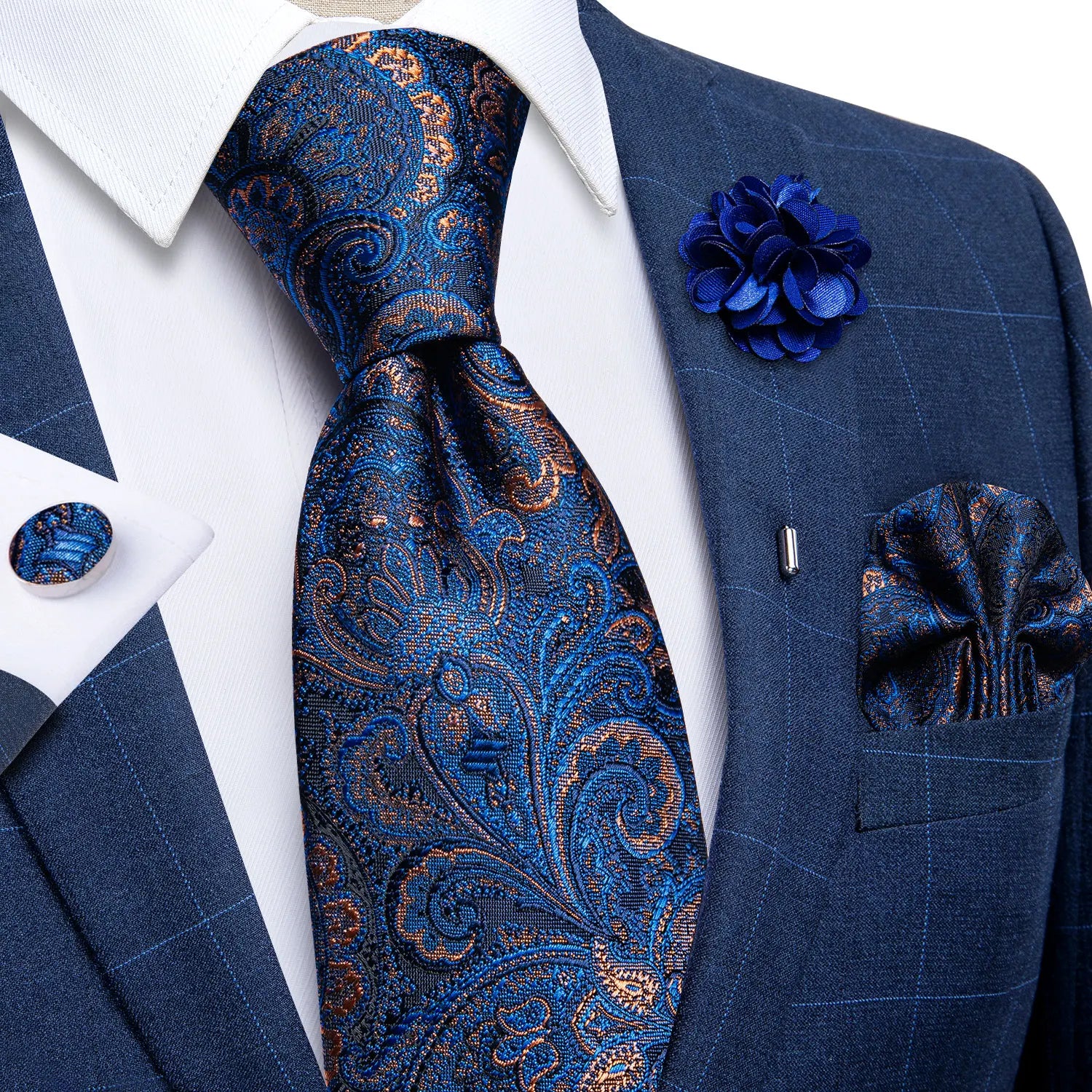 Elegant red floral blue silk ties crafted from premium silk for a refined touch. Featuring a bold floral pattern, these ties add sophistication to any outfit. Perfect for formal events, weddings, or business attire, they offer a luxurious feel with a smooth texture, making them a must-have accessory for the modern gentleman.