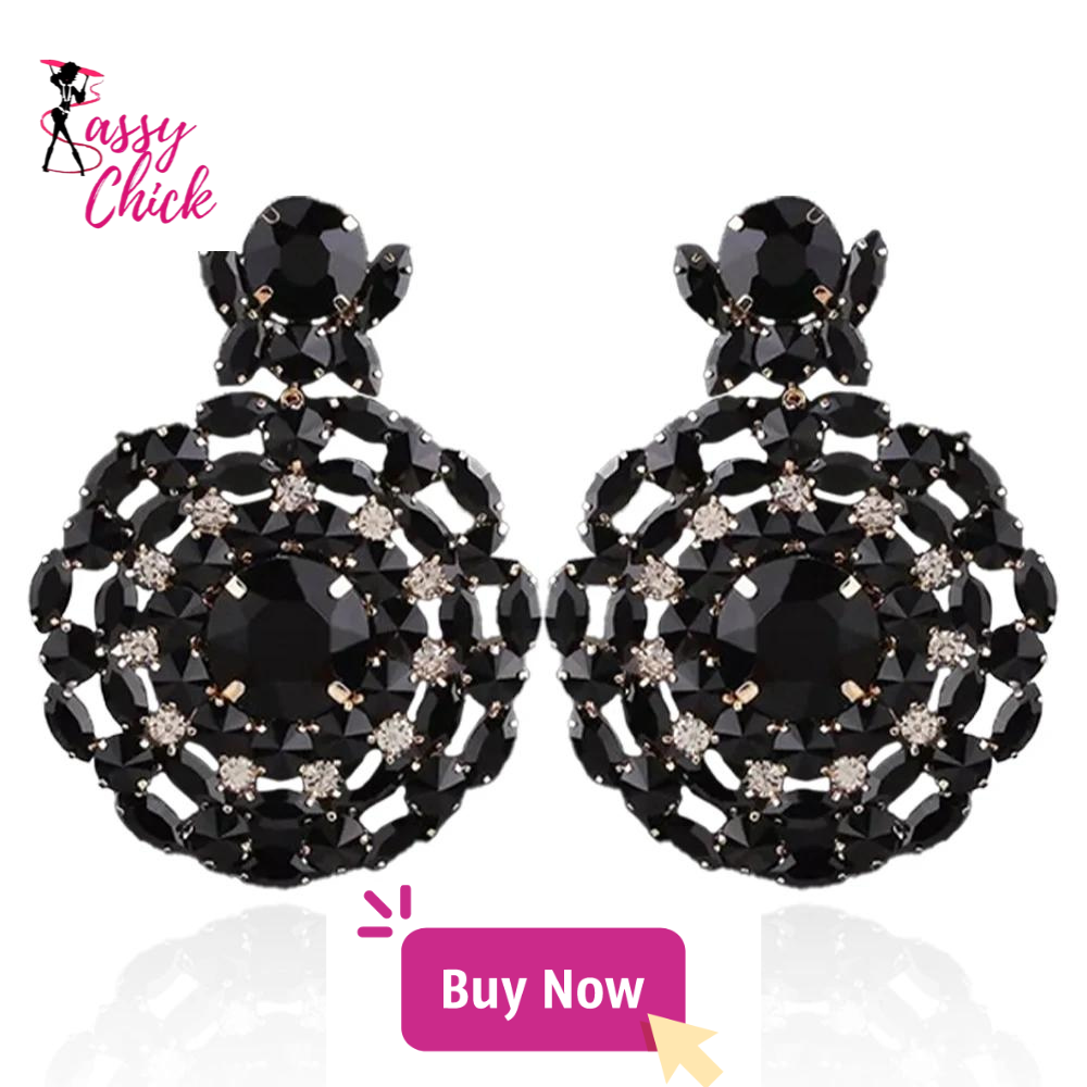 Rhinestone Black Round Earrings: Add a touch of sophistication with these elegant black round earrings adorned with sparkling rhinestones. Perfect for both casual and formal occasions, they combine timeless style with a hint of glamour, making them a versatile accessory for any outfit."