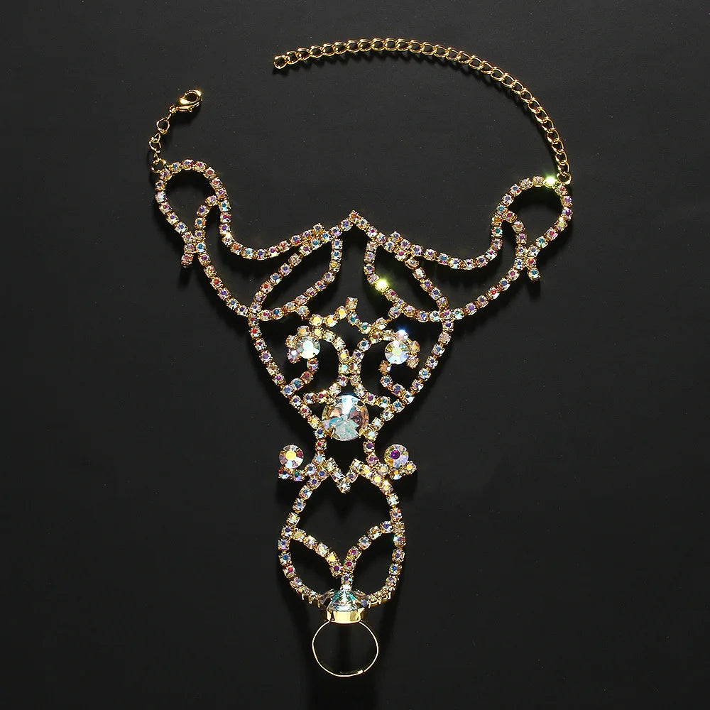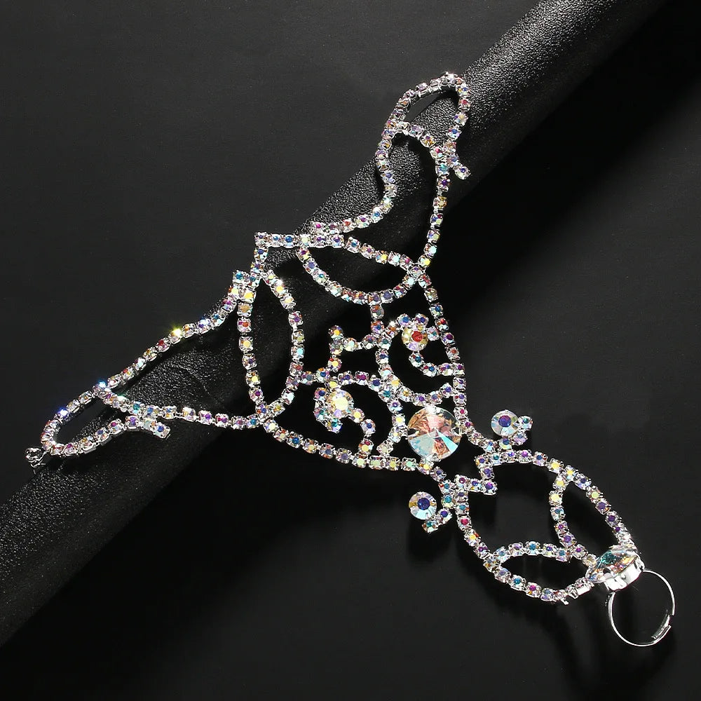 Rhinestone Geometry Bracelet. Featuring intricate geometric designs adorned with sparkling rhinestones, this bracelet adds a touch of glamour to any outfit. Perfect for special occasions or everyday wear, it offers a blend of elegance and modern chic. Secure and comfortable, this accessory is a must-have for your jewelry collection.