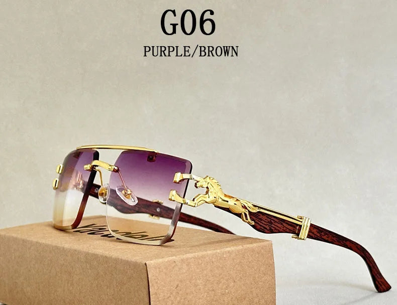 Step back in time with Rimless Vintage Square Sunglasses. Featuring a sleek, rimless design and bold square frames, these sunglasses exude retro charm and modern sophistication. Lightweight and comfortable, they offer UV protection while making a stylish statement. Perfect for sunny days or adding a vintage flair to your outfit, these sunglasses are a must-have accessory for trendsetters and classic fashion lovers alike.