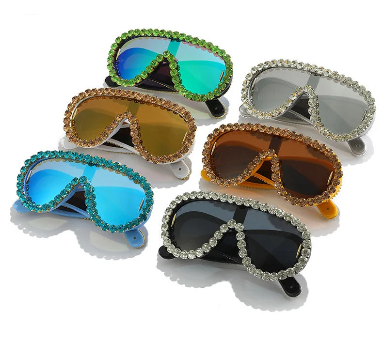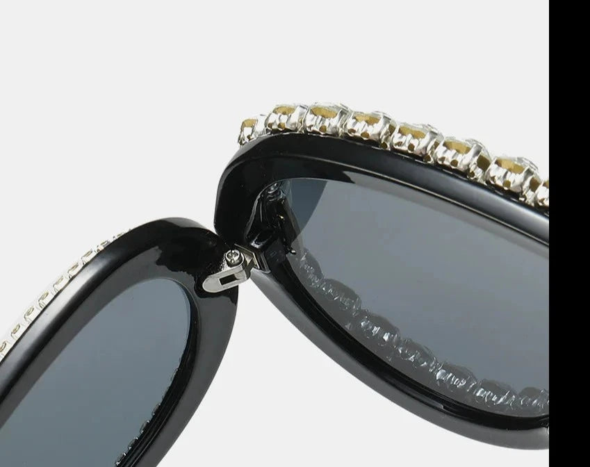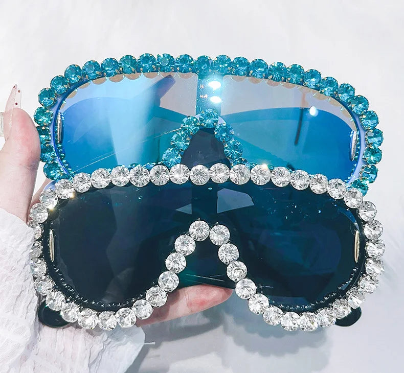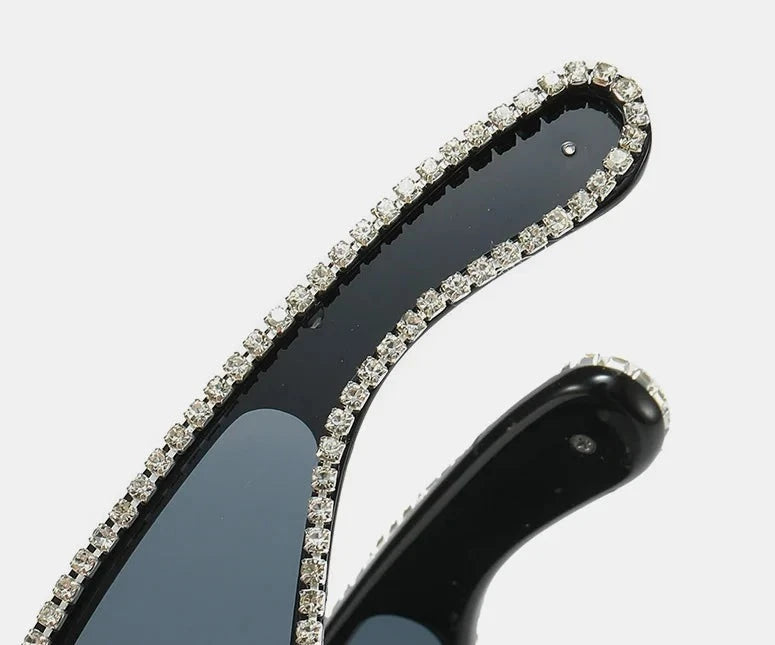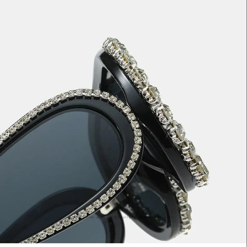 Add a touch of glamour to your look with these Shiny Diamond Rhinestone Sunglasses. Featuring a dazzling array of rhinestones that sparkle in the sunlight, these stylish sunglasses are perfect for making a bold fashion statement. With UV protection and a comfortable fit, they combine luxury and practicality effortlessly. Elevate any outfit with these eye-catching, must-have accessories.