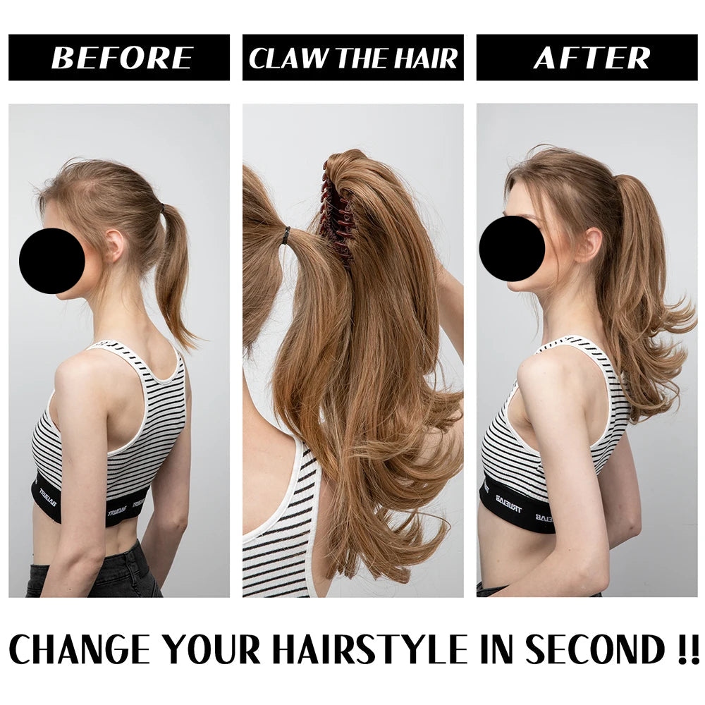 The 14" Synthetic Claw Clip-In Ponytail is a quick and effortless way to add instant volume and length to your hair. Designed with a strong claw clip, it securely attaches to your natural hair for a comfortable, no-slip fit. Made from high-quality synthetic fibers, this ponytail blends seamlessly and mimics natural hair texture.