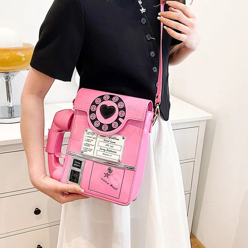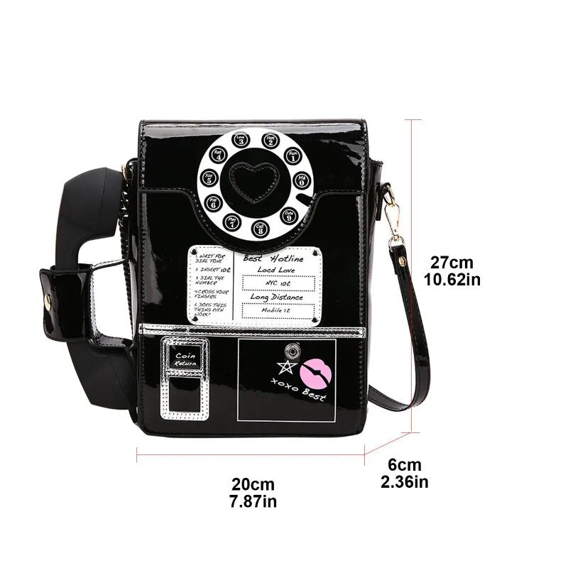 Telephone Shaped Shoulder Bag designed with a fun retro-inspired look that resembles a classic phone. Crafted from quality materials, it’s durable, stylish, and spacious enough for essentials. Perfect for parties, casual outings, or as a playful statement accessory that adds vintage charm to any outfit.