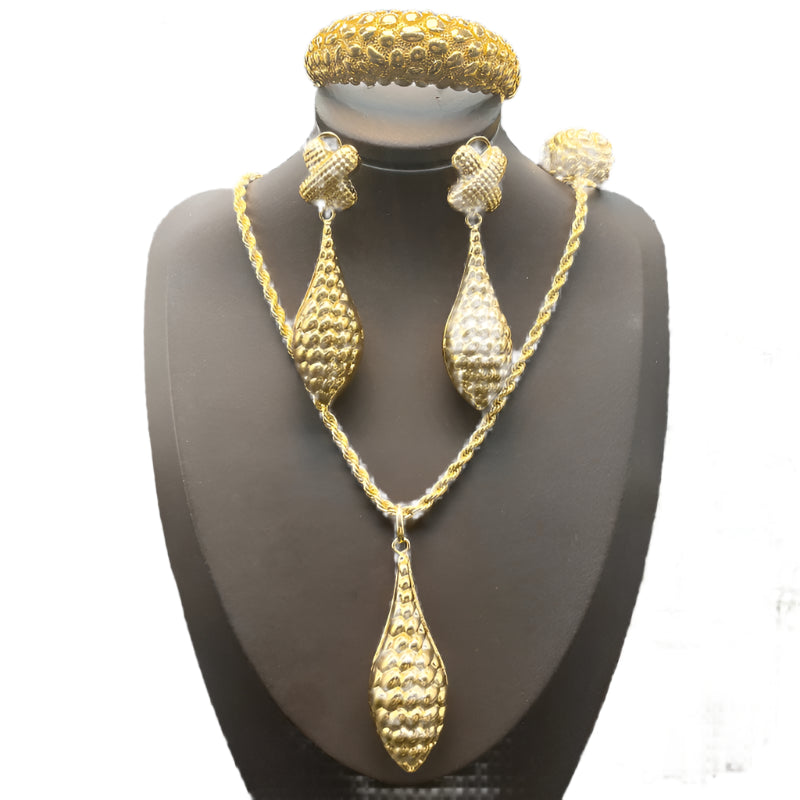 Elevate your elegance with the Women 24K Gold Plated Jewelry Set! This radiant set features a flawless golden shine and intricate craftsmanship, perfect for weddings, formal events, or daily luxury. Durable and hypoallergenic, it blends timeless beauty with a touch of opulence in every detail.