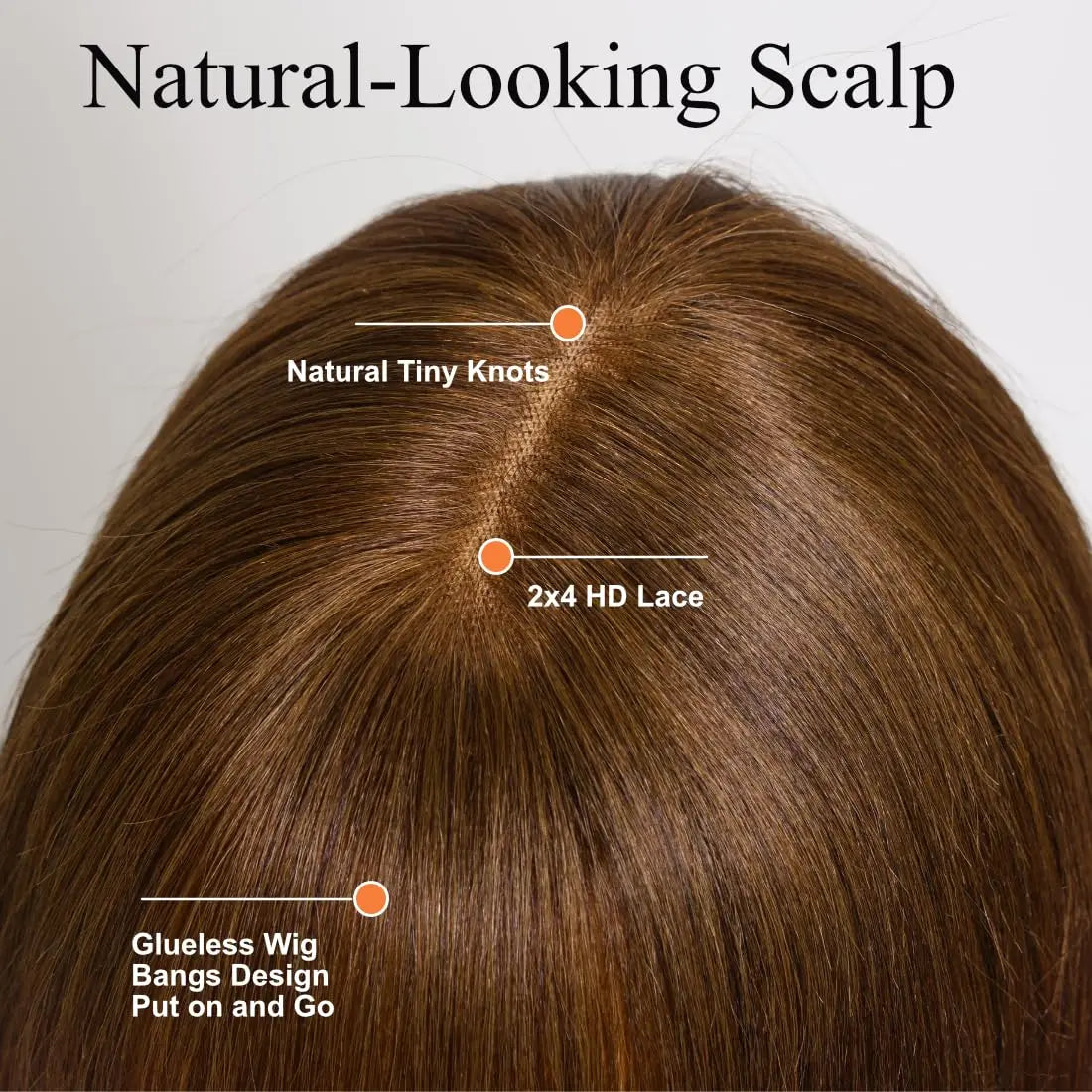 The Yaki Straight Brown Color Human Hair Wig with Bangs is a stunning blend of natural texture and sleek elegance. Made from 100% human hair, this wig features a yaki straight texture that mimics relaxed natural hair, adding volume and movement. The rich brown color enhances warmth and dimension, making it a perfect choice for any skin tone.