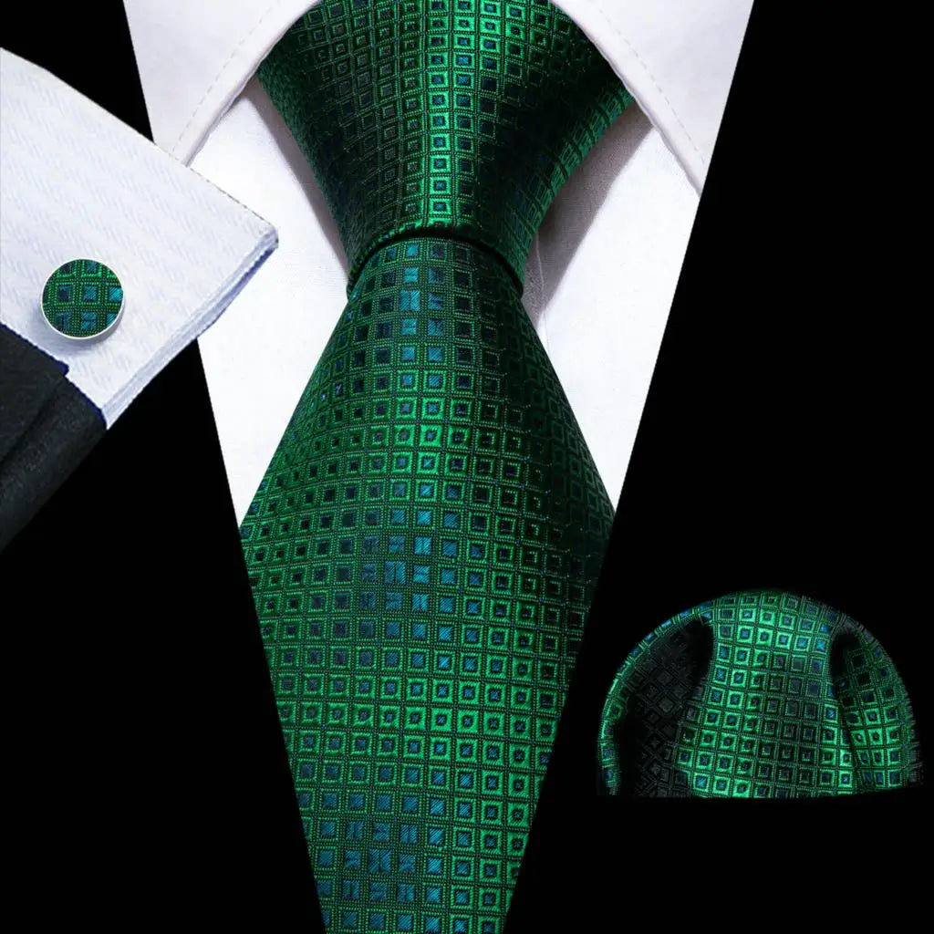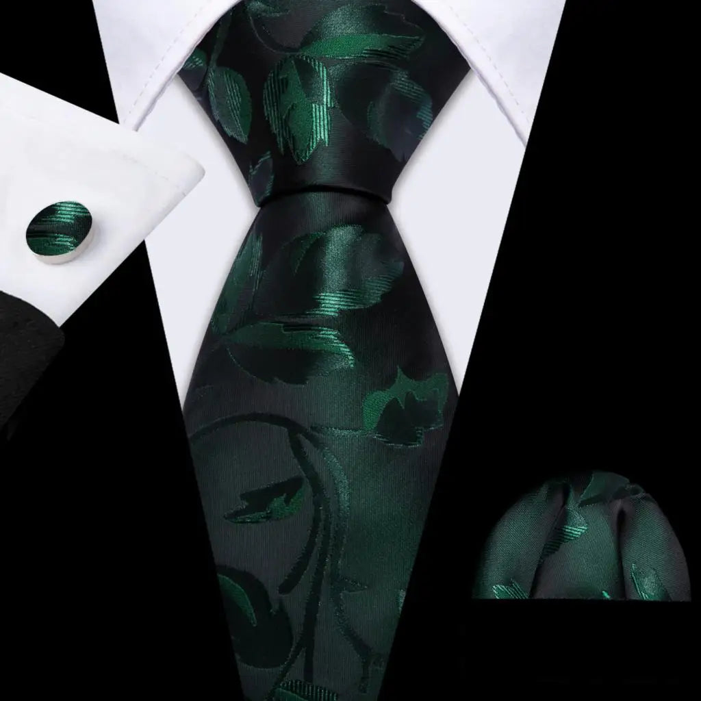 Refine your wardrobe with the Luxury Black Green Silk Ties Set, crafted from premium silk for a sleek finish. The bold black and green design offers a perfect balance of sophistication and style. Complete with a matching handkerchief, this set is ideal for business, weddings, or formal events.