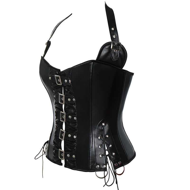 Buckles Steel Boned Steampunk Leather Corset is a striking, structured piece designed to accentuate the waist. Made from durable leather, it features steel boning for a firm, supportive fit and multiple buckles for an industrial, steampunk-inspired look. Ideal for creating a dramatic silhouette with a vintage, rebellious edge.