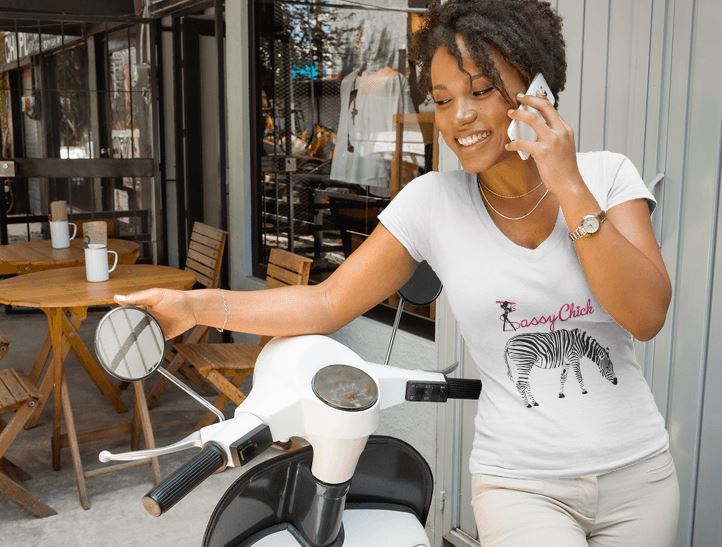 A unique and soft deep V-neck cut tee. This shirt has a semi-relaxed, feminine fit, and flattering short sleeves. A soft tee made to go with everything in your closet. Sassy Zebra Women's V- Neck Tee