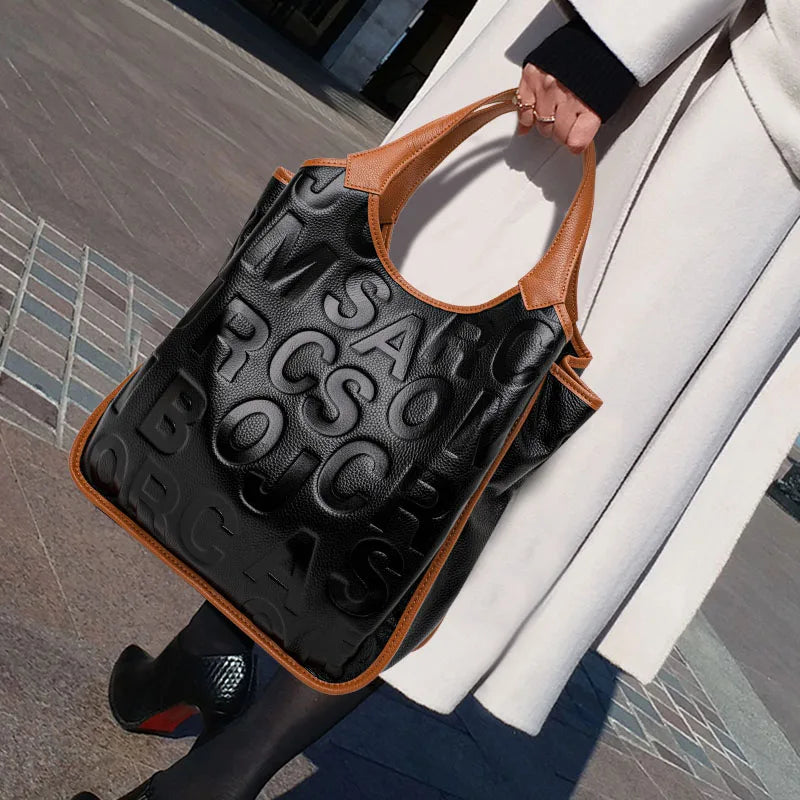 The Black Letter Style Large Handbag combines bold modern design with everyday practicality. Featuring statement letter accents, a spacious interior, and sturdy handles, it’s perfect for carrying all your essentials in style. A versatile piece that adds an urban-chic touch to any outfit.