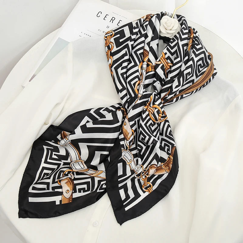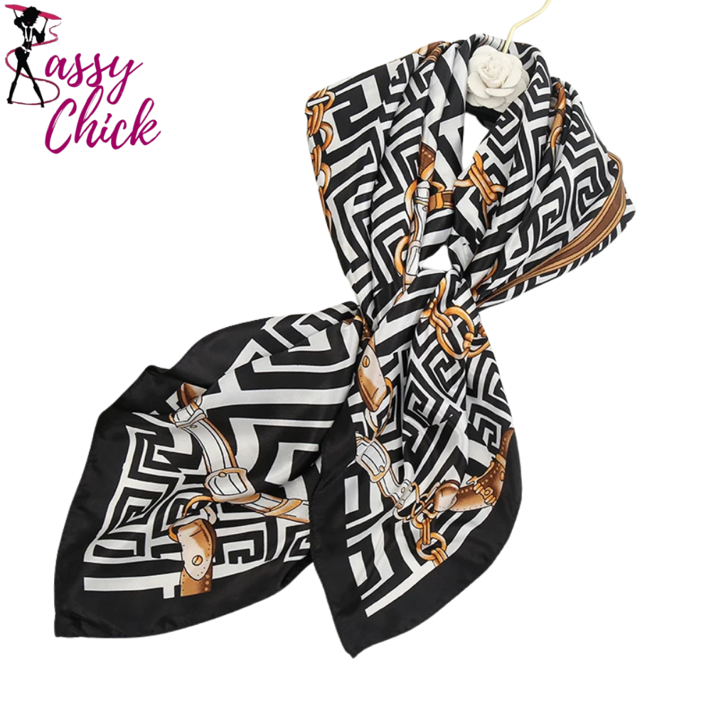 90cm Silk Satin Square Ladies Headband Neckerchief Foulard Sassy Chick Logo