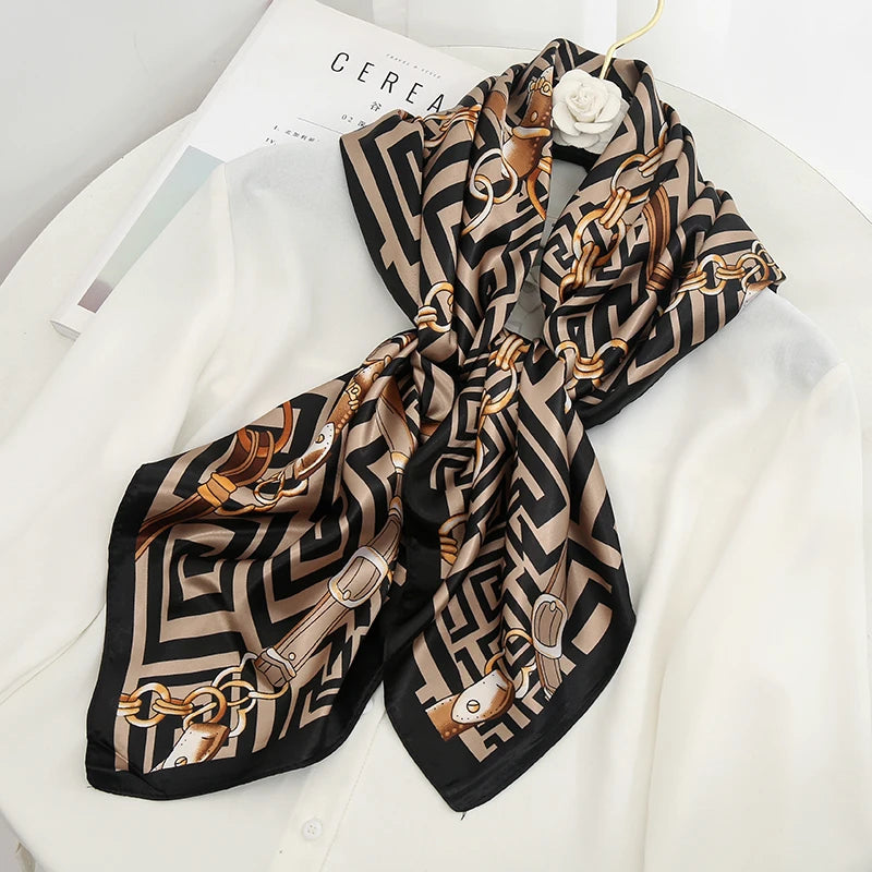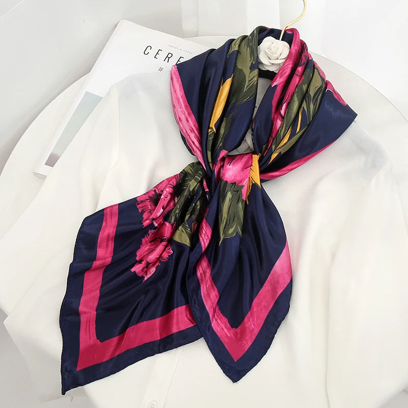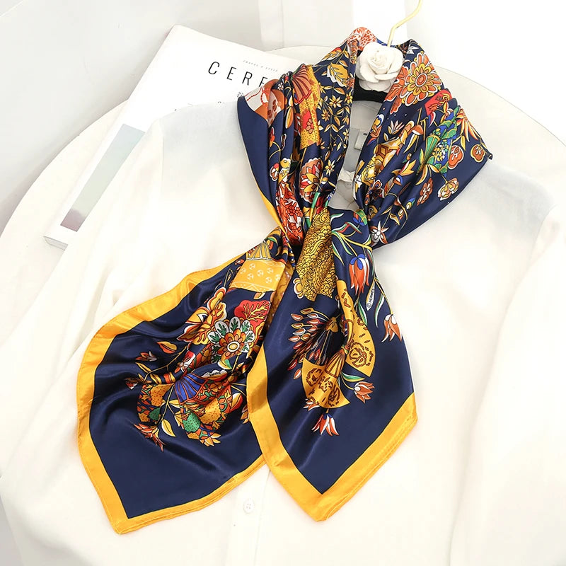 90cm Silk Satin Square Ladies Headband Neckerchief Foulard