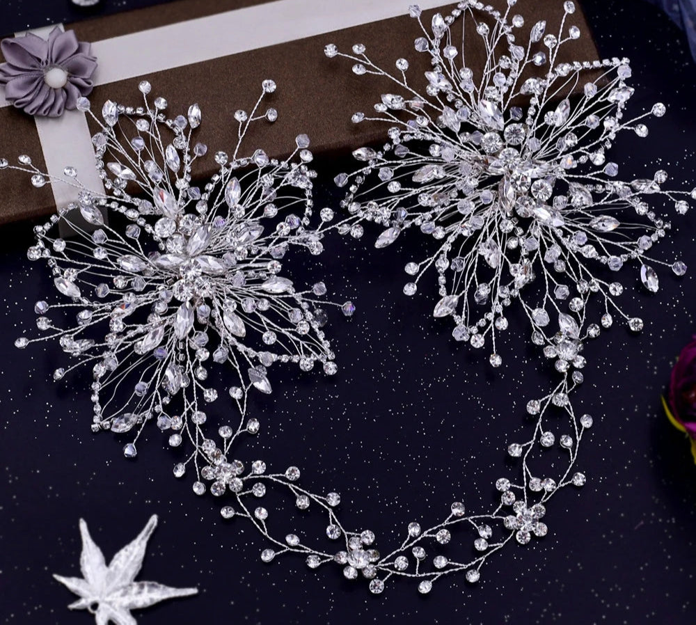 Elevate your bridal style with the Rhinestone Hair Accessories. Adorned with sparkling rhinestones, this elegant piece adds a regal touch, making you shine with grace and sophistication. Perfect for weddings, receptions, or formal occasions, it completes your hairstyle beautifully.