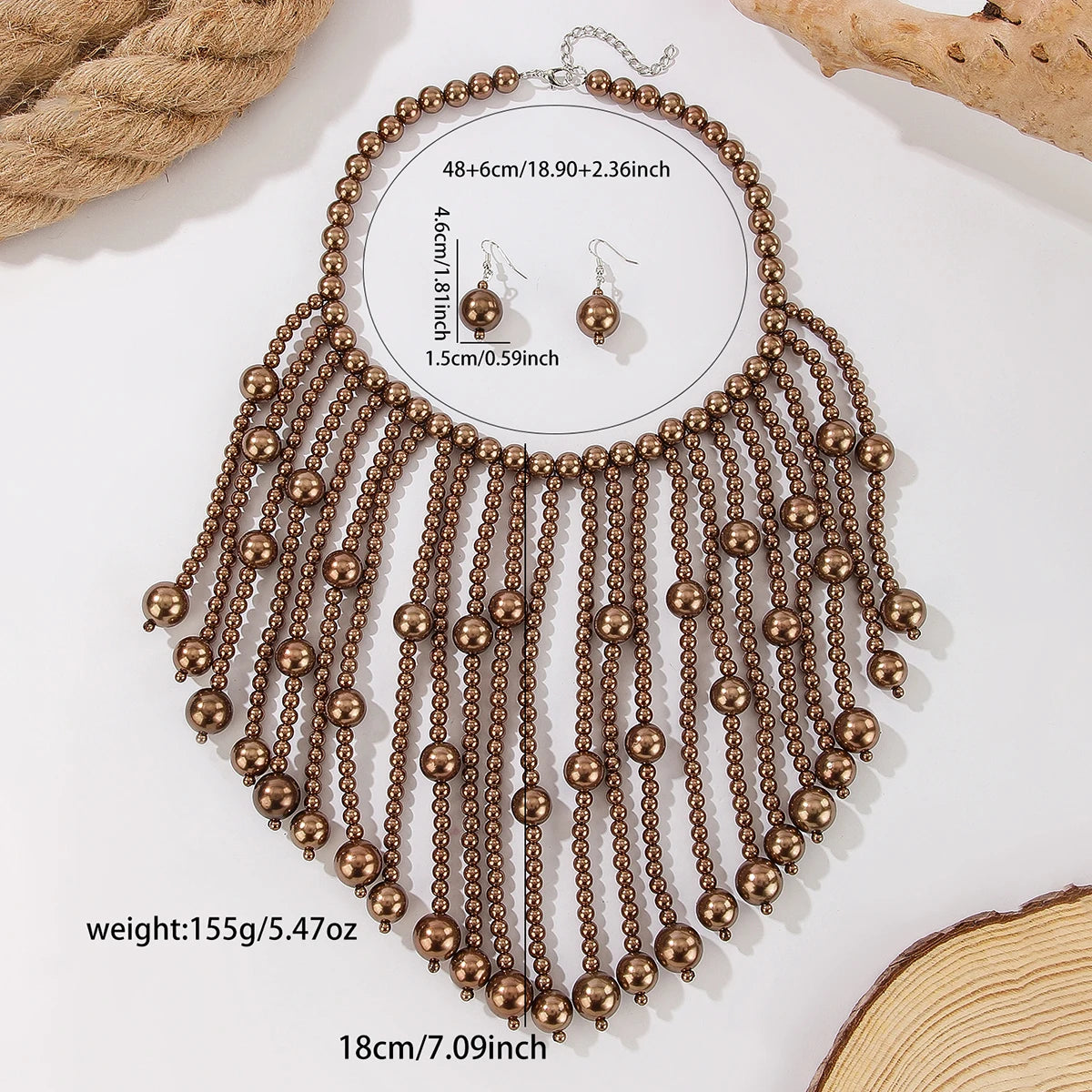 Elegant Handmade Bridal Pearl Tassel Necklace And Earrings - Brown is backordered and will ship as soon as it is back in stock.