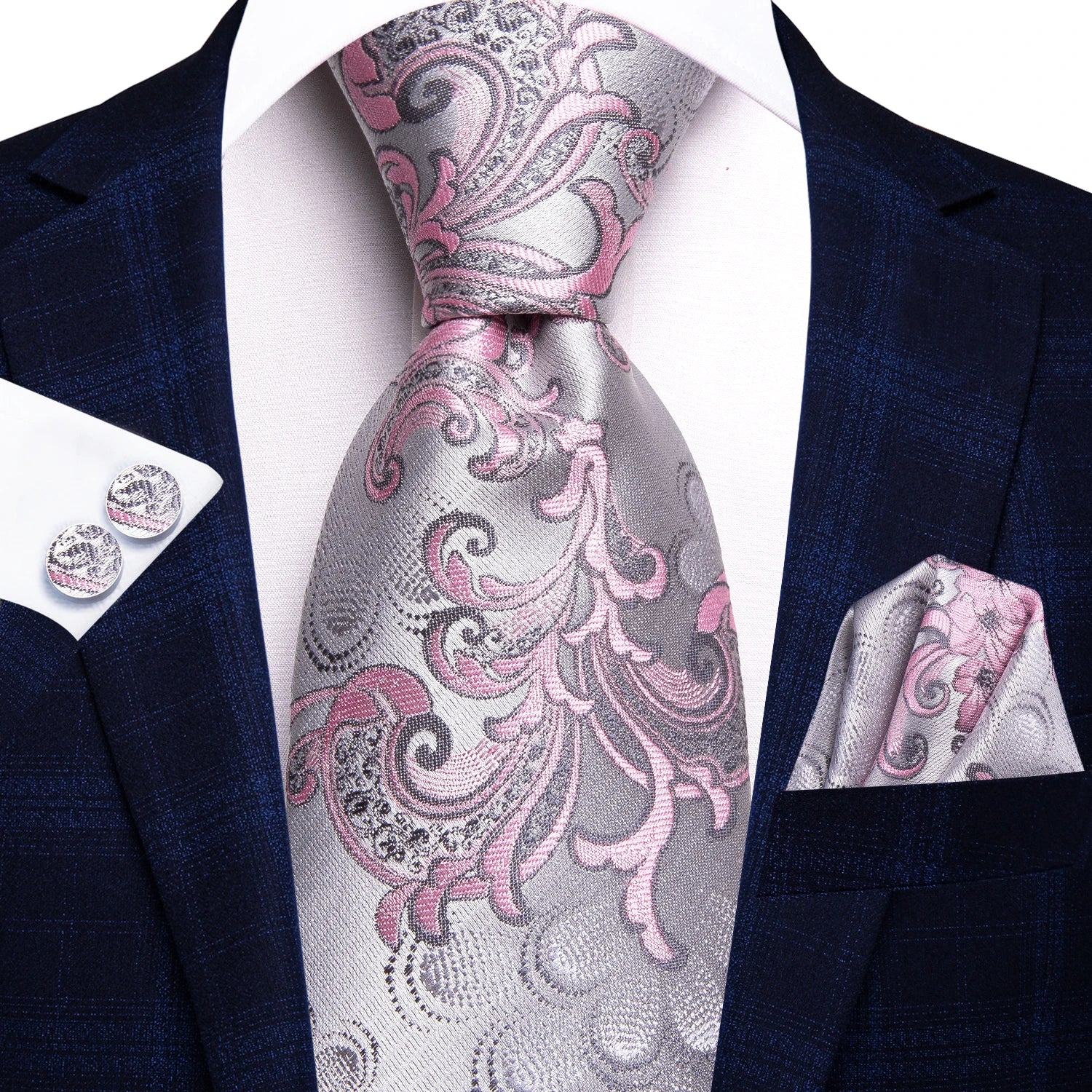 Bring soft sophistication to any formal outfit with this Floral Pink Elegant Necktie Set. Featuring a refined floral pattern, it adds charm and freshness to your style. The coordinated handkerchief and cufflinks complete the ensemble, offering a seamless and polished look perfect for weddings, business events, and special occasions. A beautifully crafted set that enhances any suit with graceful elegance.