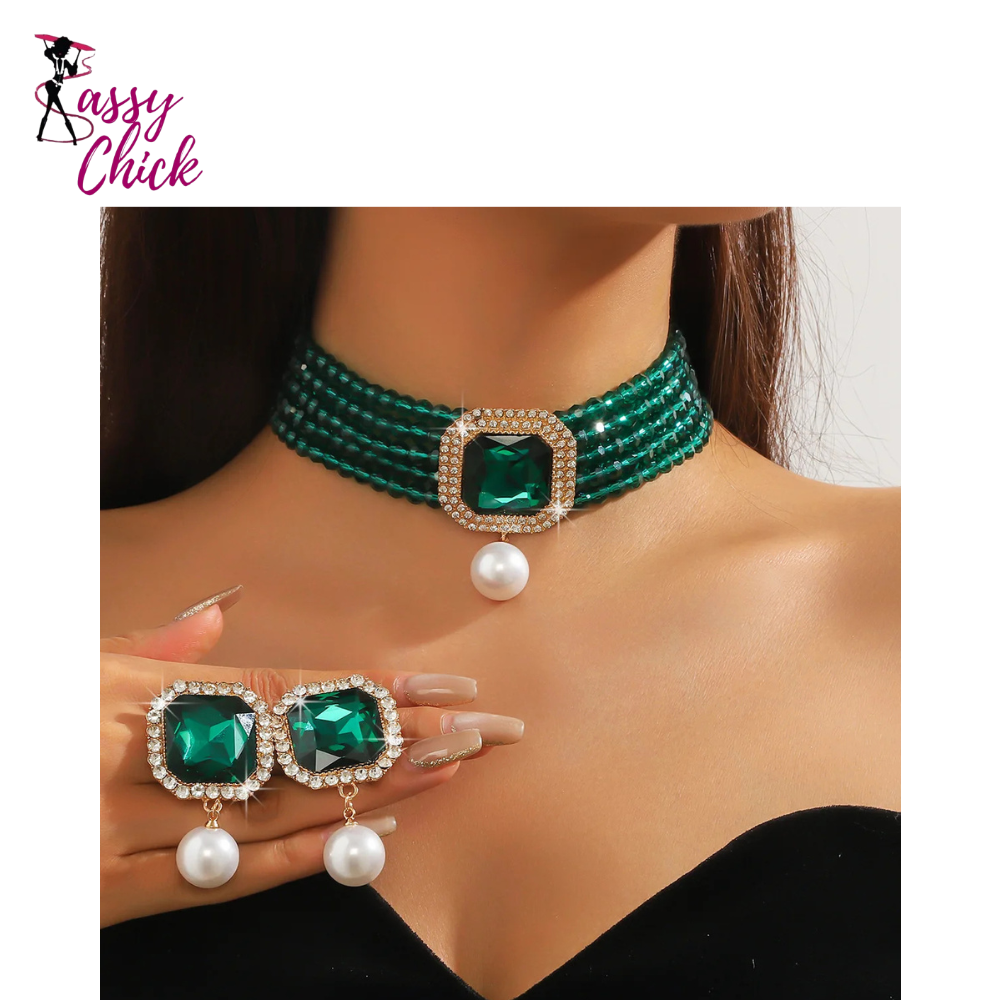 Green Geometric Square Pearl Earrings  Sets Sassy Chick Logo
