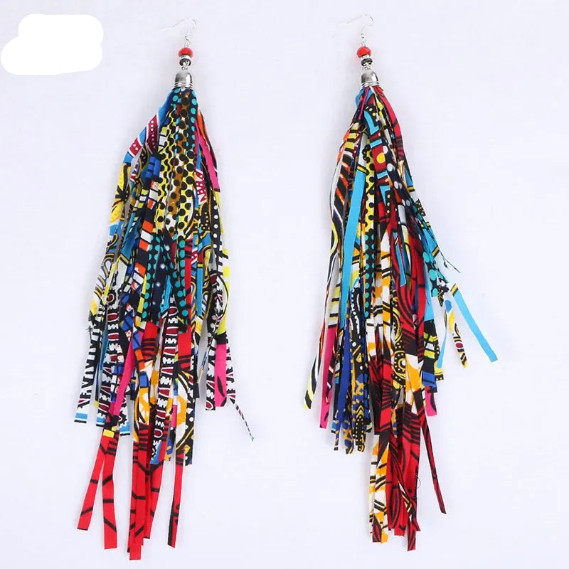 Celebrate culture and color with these African Fabric Tassels Earrings. Crafted with vibrant prints and lightweight fabric, they offer a bold, ethnic-inspired style that's perfect for festivals, casual days, or unique gifts. Add a splash of Africa to your accessory game effortlessly.
