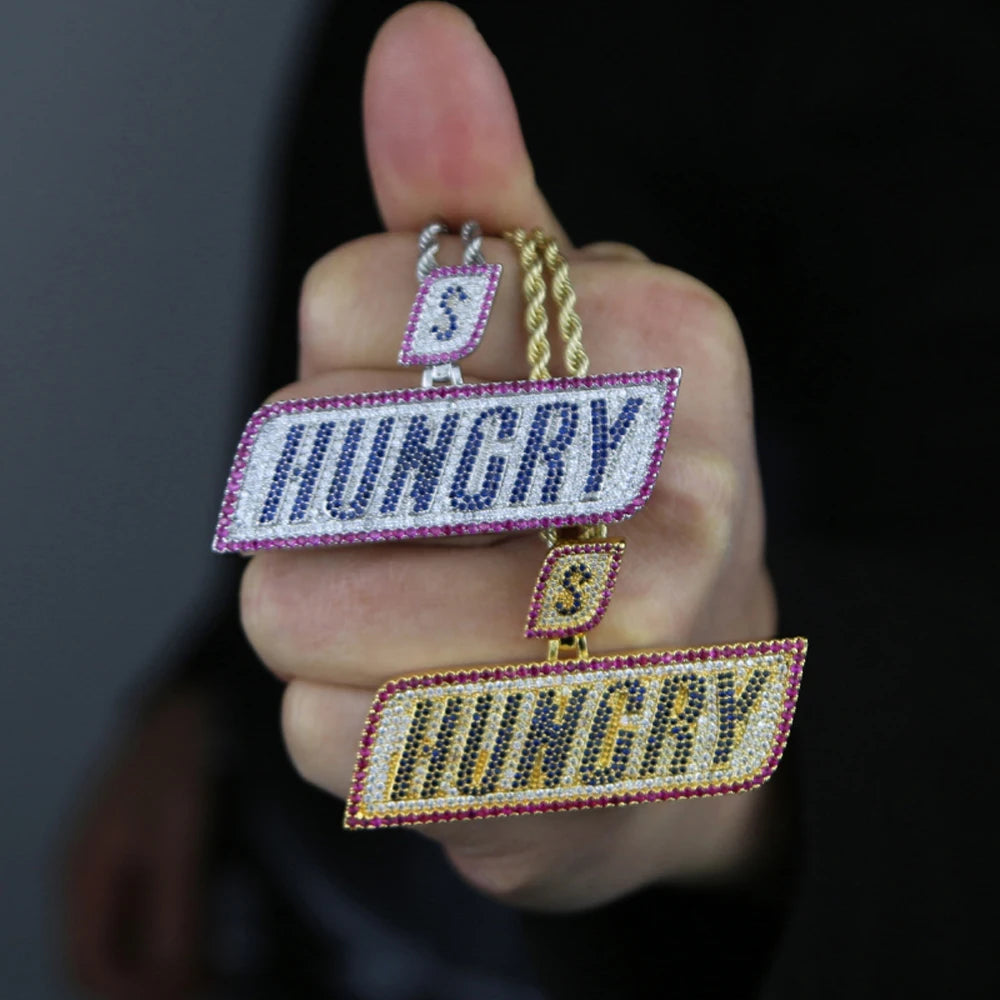 Unleash bold street style with the Iced Out Hungry Cubic Zirconia Charm Pendant Necklace. Featuring shimmering stones and a striking “HUNGRY” word design, this piece speaks ambition and attitude. Whether layered or solo, it’s perfect for elevating your hip hop-inspired fashion statement.