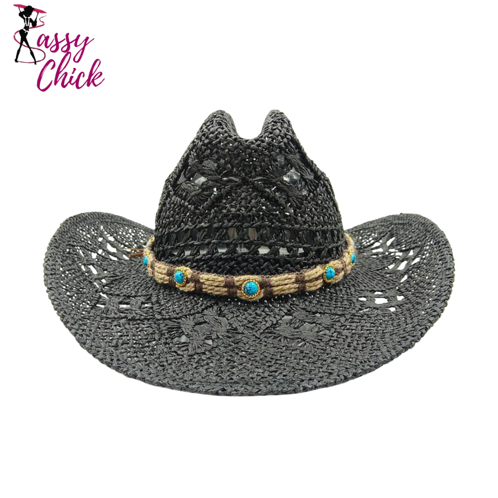 Black Western Cowboy Straw Hat Sassy Chick Logo