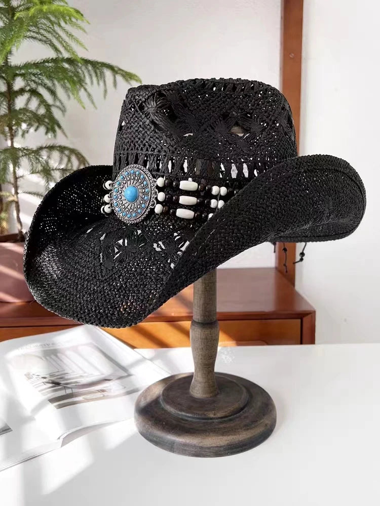Black Western Cowboy Straw Hat