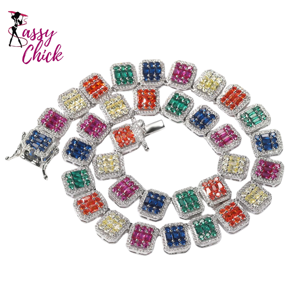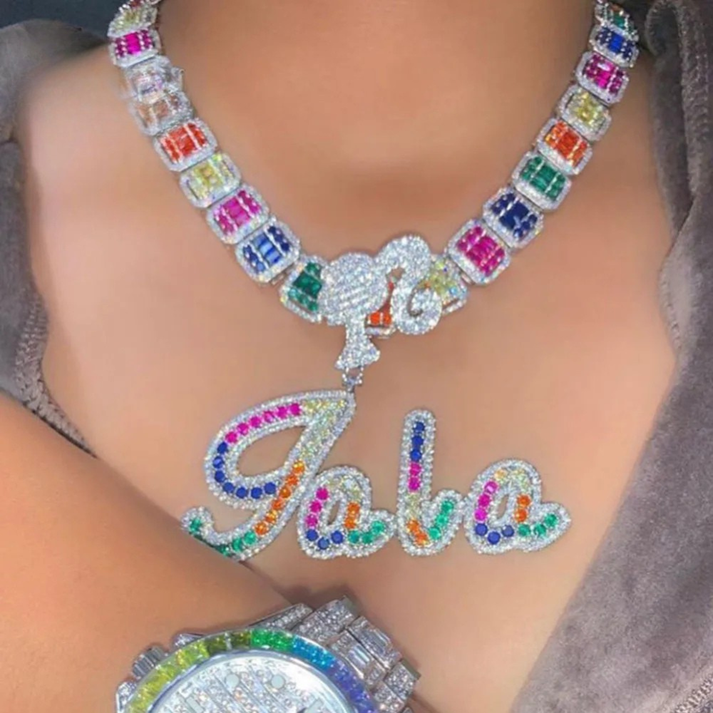 Turn heads with the Multicolor Cursive Letter Icy Necklace. Drenched in rhinestones and shimmering hues, this bold bling showcases your unique style and confidence. A dazzling personalized accessory that speaks attitude, flair, and unstoppable glam energy in every sparkle.
