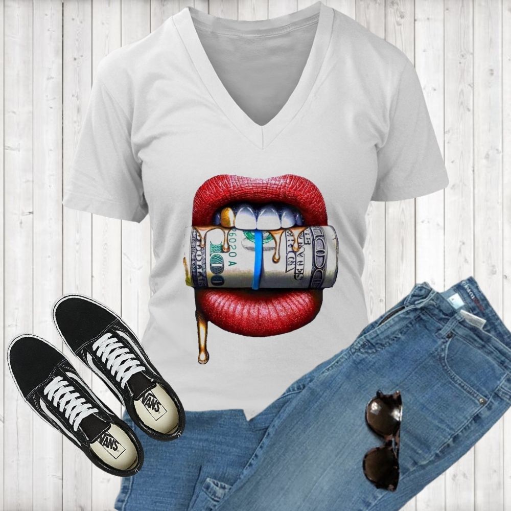 A unique and soft deep V-neck cut tee. This shirt has a semi-relaxed, feminine fit, and flattering short sleeves. A soft tee made to go with everything in your closet