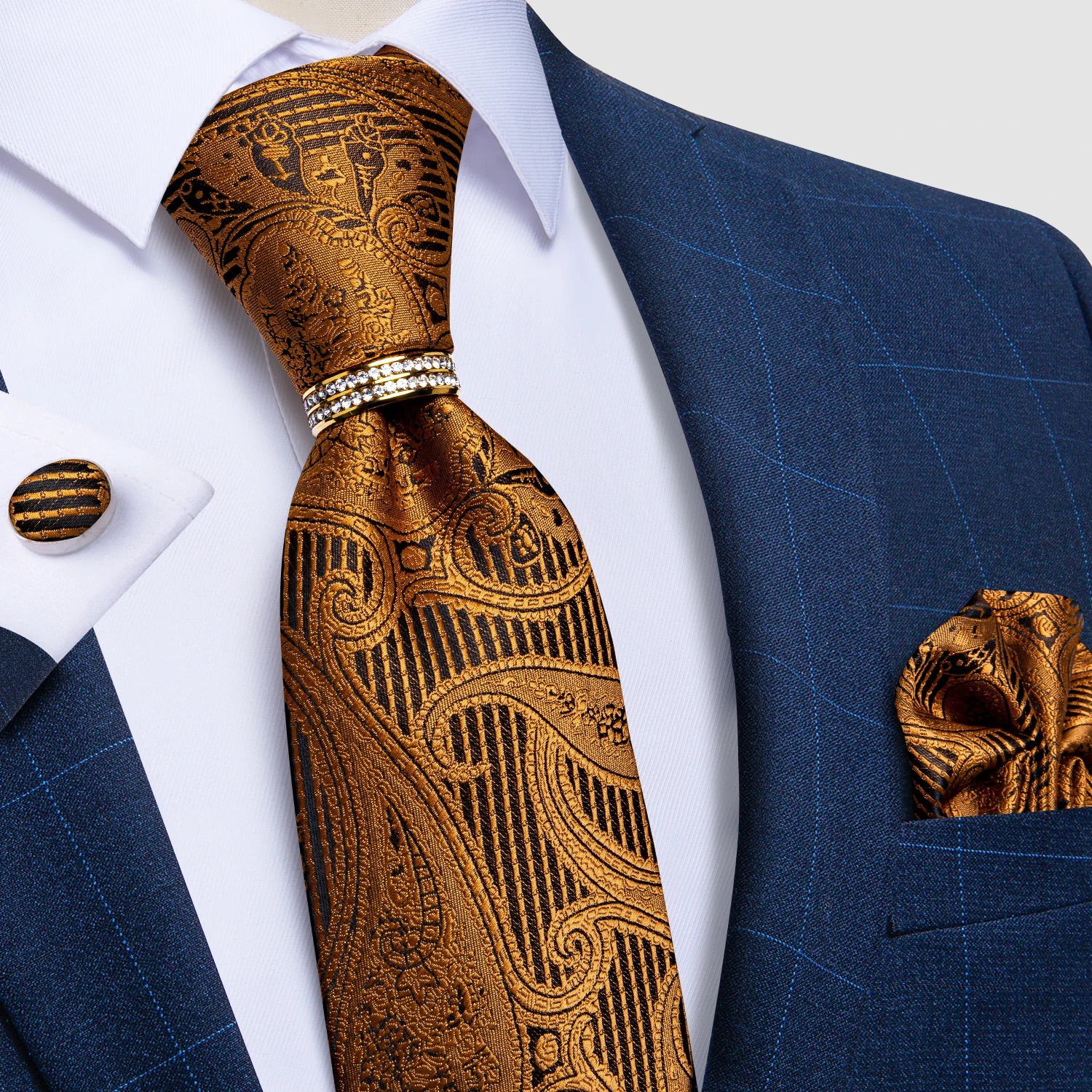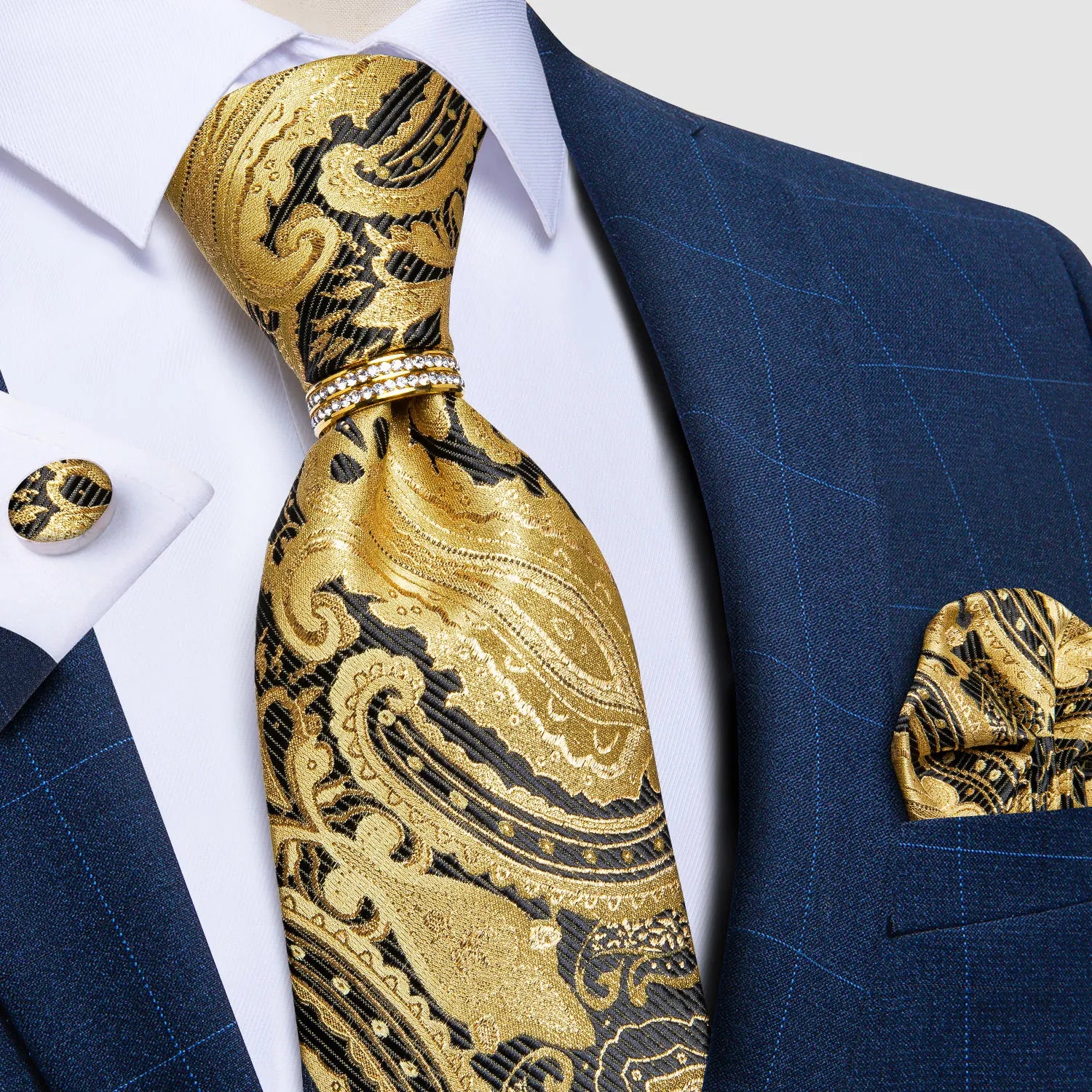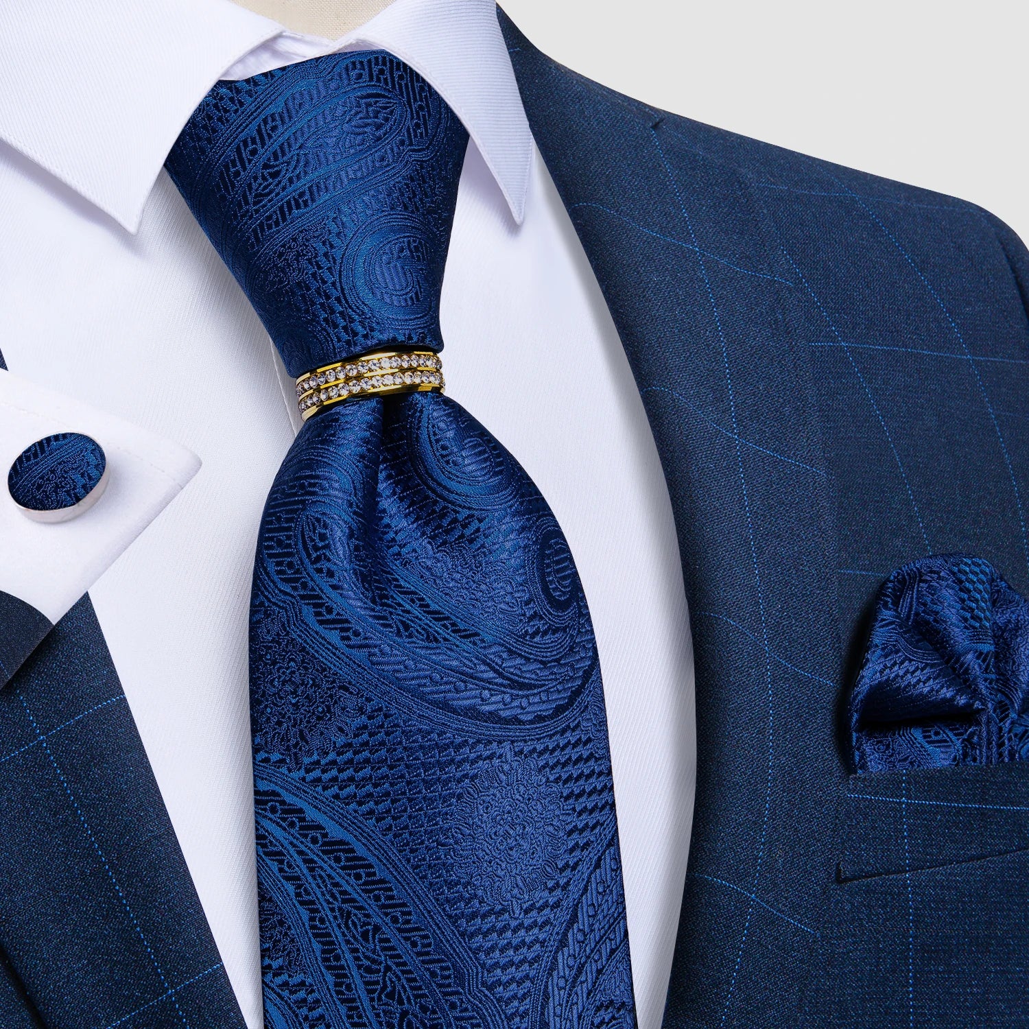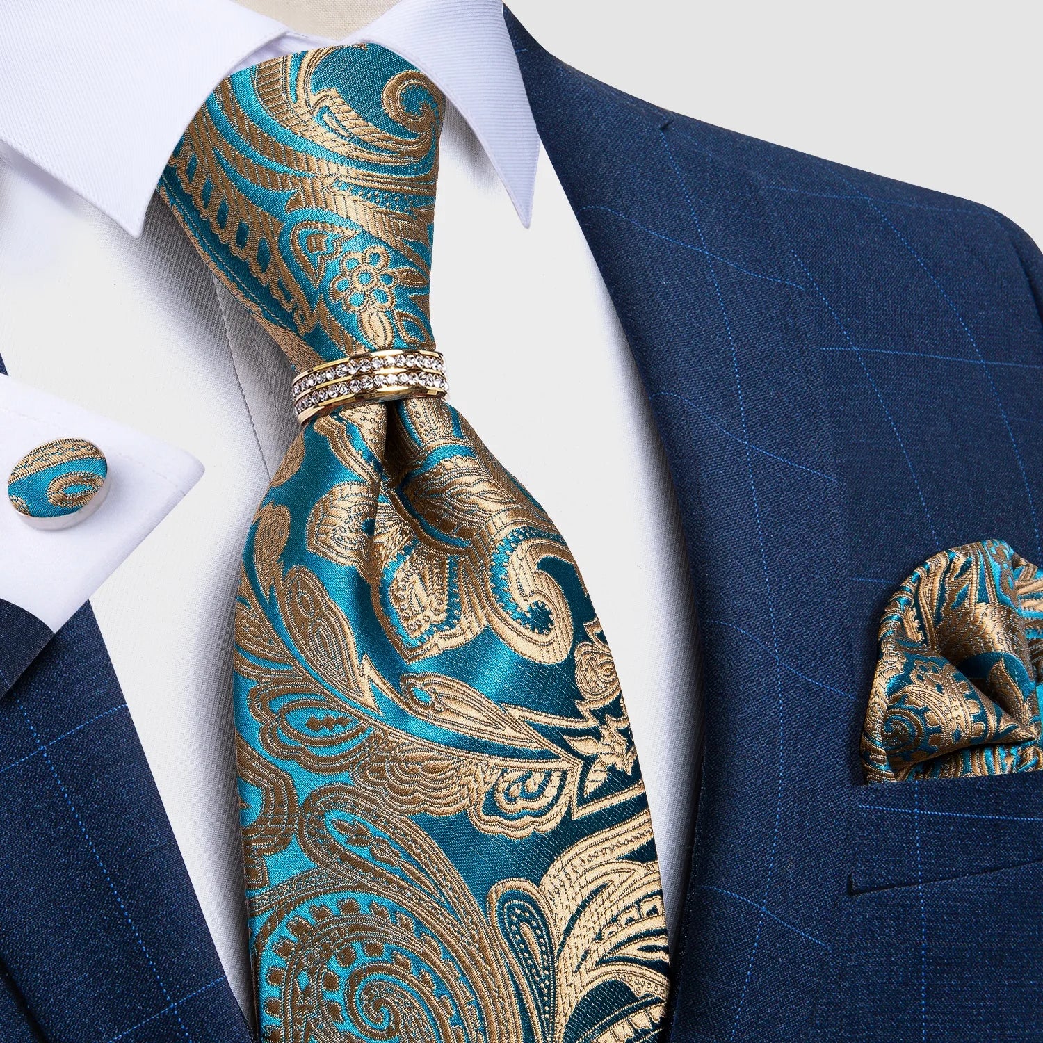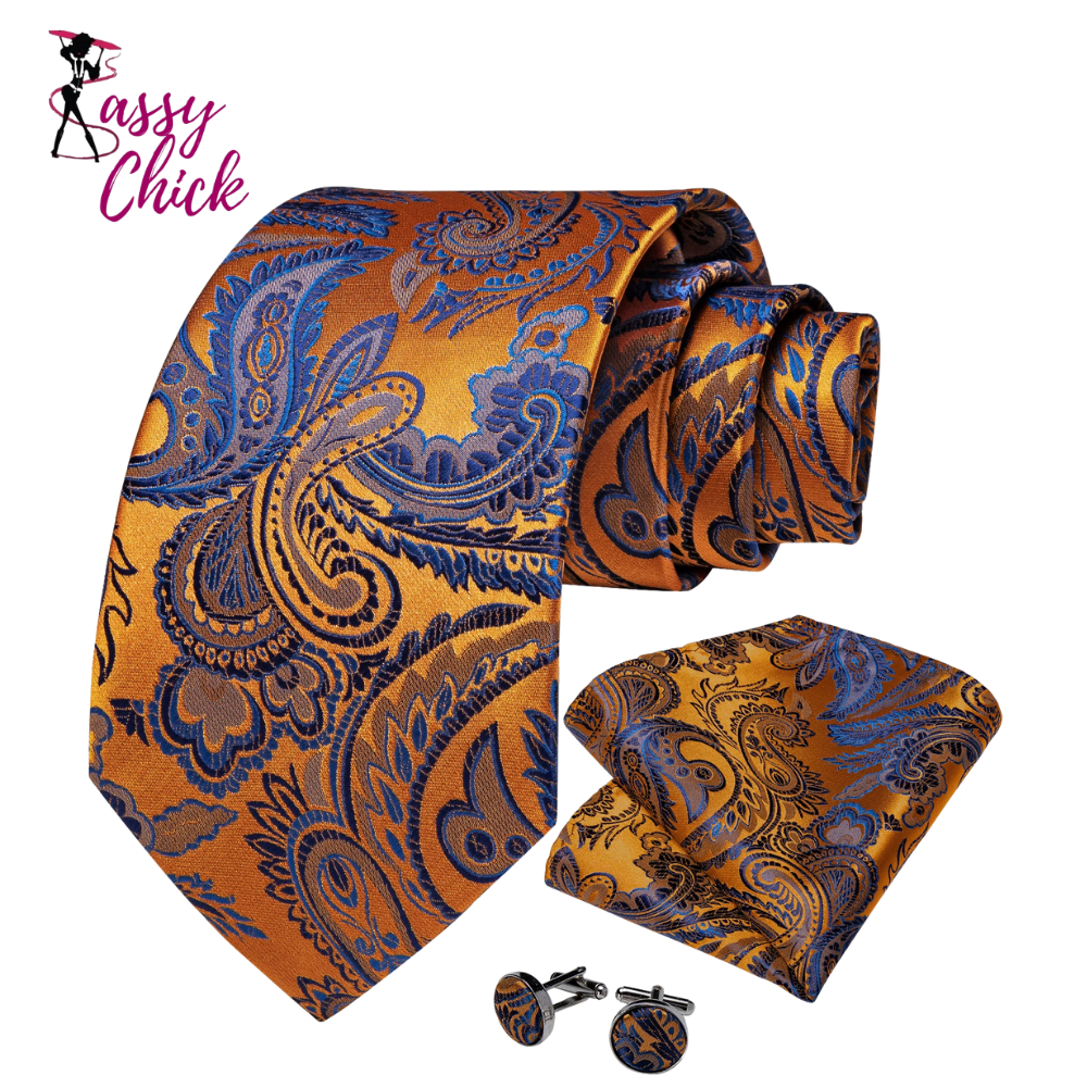 Make a bold statement with this Blue Gold Paisley Tie Set, featuring an elegant silk necktie, matching pocket square, and stylish cufflinks. Perfect for weddings, formal events, or business wear, this sophisticated set adds a touch of luxury and timeless charm to any gentleman’s wardrobe.