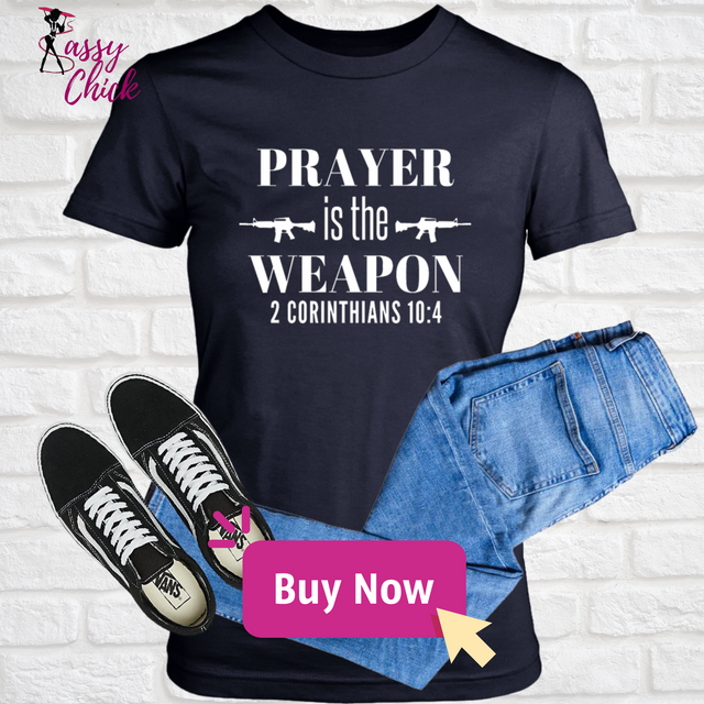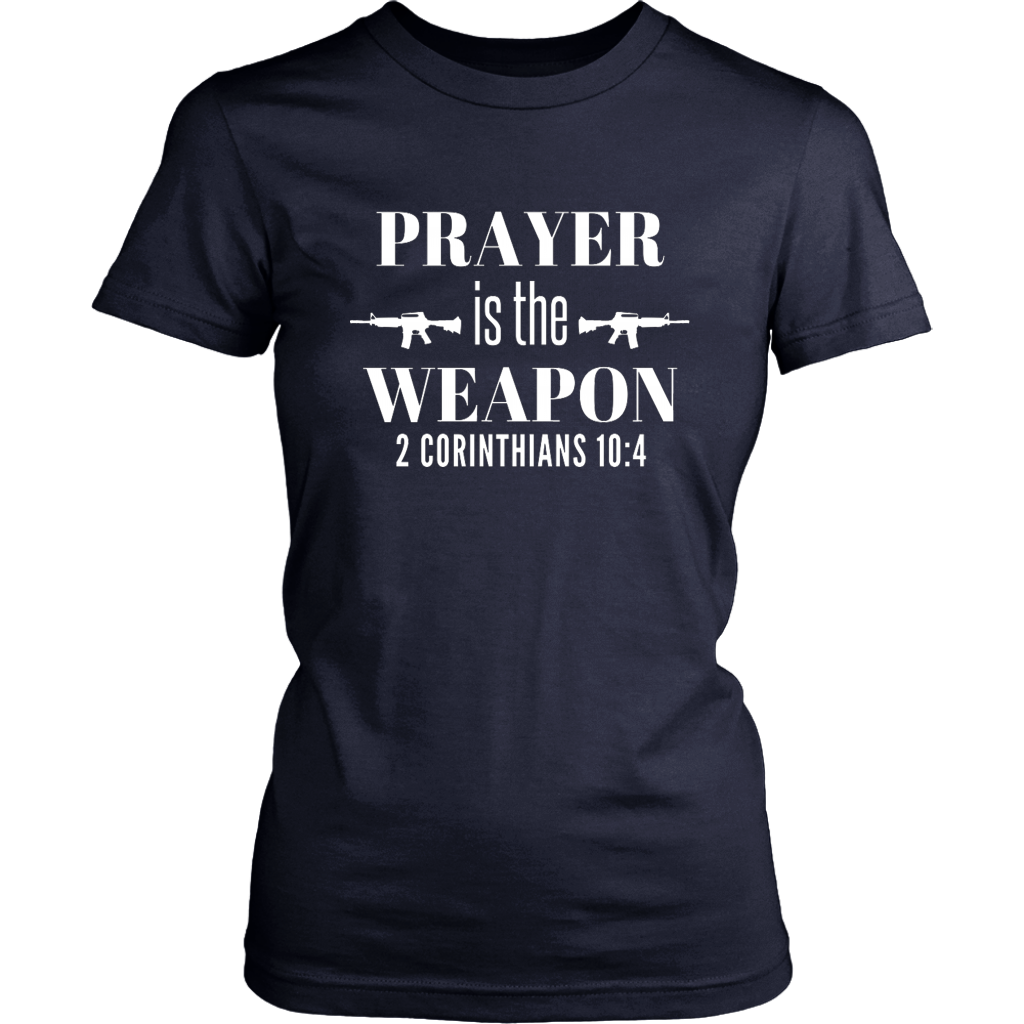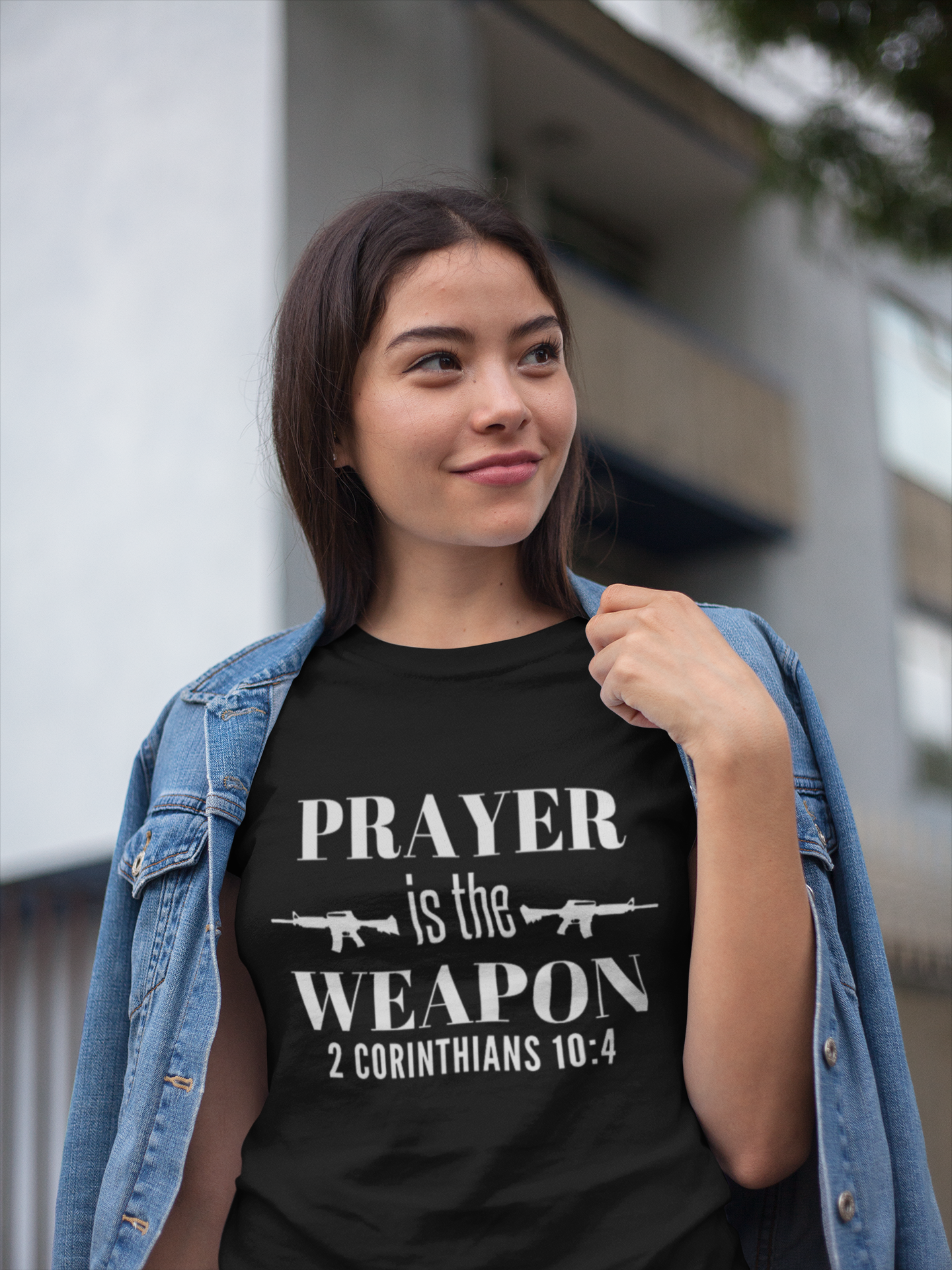 Christian Saying Prayer Is The Weapon T Shirt For Men, Women, Girls, Guys And Religious Gifts For Christian Mom, Dad, Papa, Mum, Grandpa, Grandma. If You Believe Or Faith, Christianity, Jesus Or Bible Verse Then This Cool Christian Just For You. Prayer T-Shirt