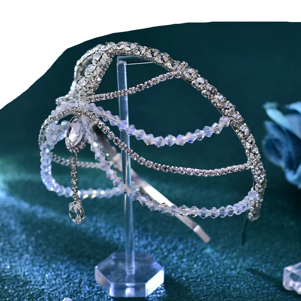 Add elegance to your wedding or event look with this crystal bridal headband. Designed with delicate chains and sparkling details, it pairs beautifully with braids or updos. Perfect for brides, banquets, or formal occasions.
