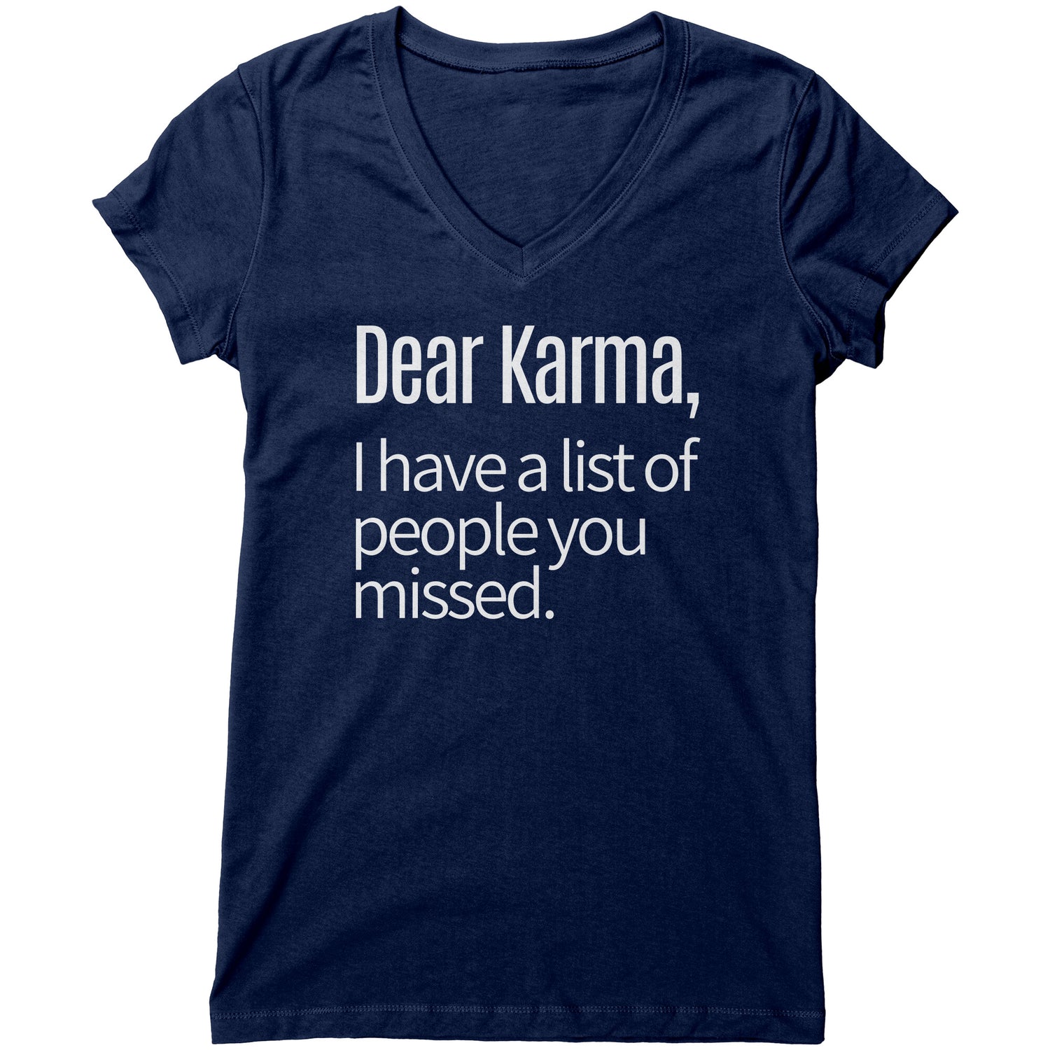 Part of our new relaxed collection, this womens v neck jersey t shirt is available in a variety of fabrications and features short sleeves and a new modern, relaxed fit for effortless style. "Dear Karma 2" V-neck Shirt